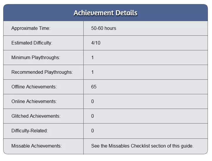 《染血圣杯:阿瓦隆的陨落》成就指南 本指南旨在帮助玩家解锁游戏中的所有成就。其中包含一个容易错过内容的清单,确保追求全成就的玩家能在自然推进游戏的过程中顺利完成。 开始前,请注意以下几点: 1. 本指南全程包含剧透,包括故事细节和任务结局。 2. 请经常手动存档。 如果您喜欢更有条理的布局,还可以使用电子表格版本。它包含与Steam指南相同的信息,但更易于浏览和跟踪进度。保留多个存档点能让你更轻松快速地回溯并解锁正常流程中错过的成就。本指南包含所有与成就相关任务的攻略。攻略中展示的对话选项并非在所有情况下都必须选择,但经过测试,按此操作可确保解锁成就。从技术上讲,几乎所有成就都可能错过,但加载之前的存档可以获取绝大多数成就,且不会损失太多时间。建议参考指南中的【易错过内容清单】部分,以避免遗漏那些一旦忽略就需要花费大量时间弥补的少数成就。无法回头的节点出现在第三章后期,就在你进入【焦痕议会】之前。当你完成游戏后,你可以选择回到那个时刻或开始新游戏+。