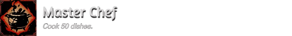 解锁【Master Chef】成就的简单方法是前往下图所示位置厨房中的鲁亚克处。他出售大量便宜的烹饪食材,可用于解锁该成就。在外面放置营火,烹饪50道菜即可。 注意:你可以随时通过打开个人资料并选择成就进度来追踪自己的进度。