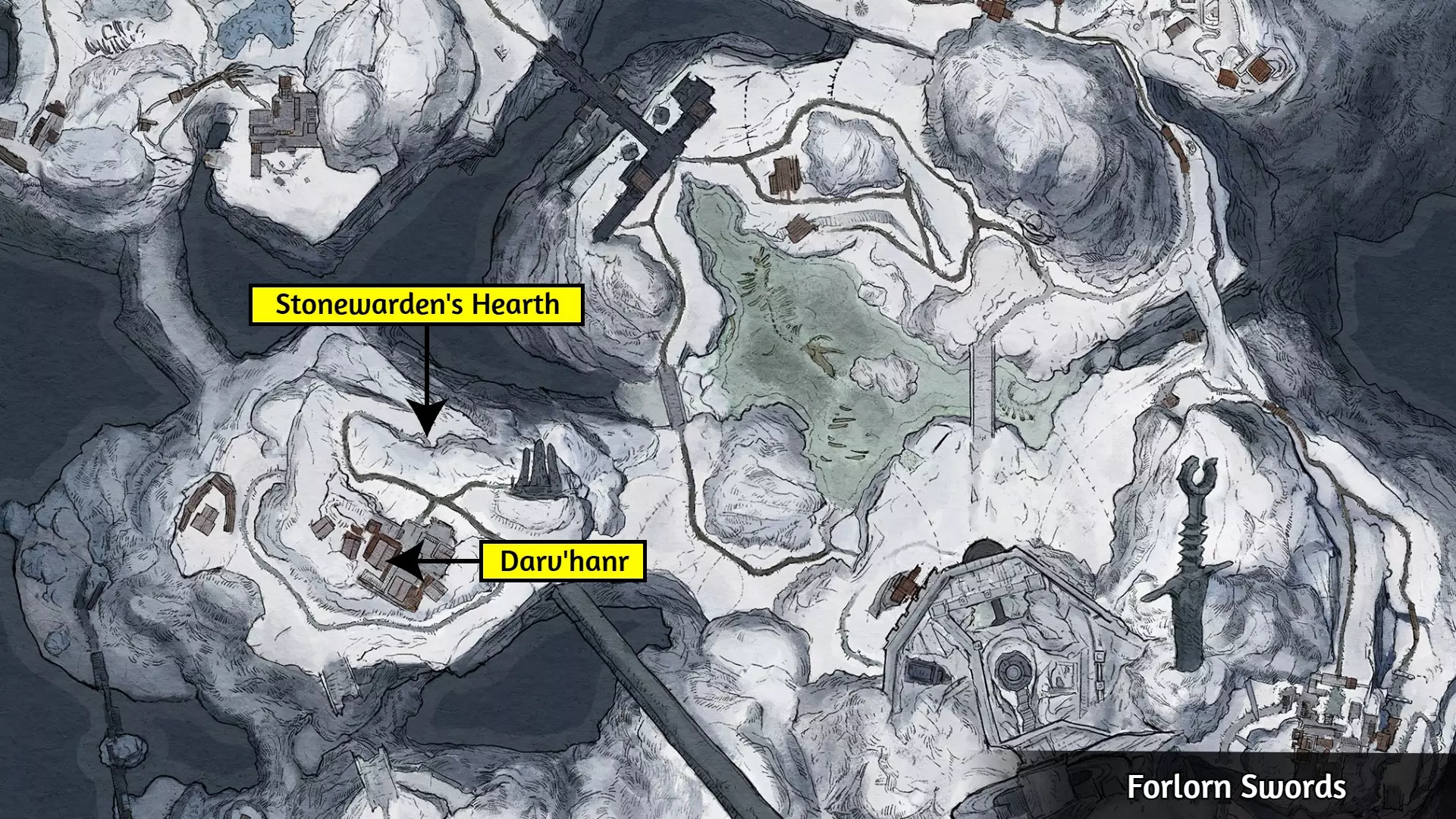 前置物品 鹤嘴锄 - 可从南门附近的奥拉思处购买。 步骤1 创建手动存档,以防出错。 步骤2 与下图所示位置的乌格威对话。耗尽其对话直至出现以下选项: ▸ 我如何加入石卫? ▸ 您是大师,请指点我。 ▸ 至少让我试试。 步骤3 使用任意磨刀石,从手工制作菜单中制作粗凿圣物。所需材料及其位置如下: wyrdstone - 可在下图所示位置开采。 空灵蛛网x5 - 白天击杀类人生物,然后在夜间返回同一位置击杀其妖灵。 步骤4 返回乌格威处,耗尽所有对话选项以完成任务。
