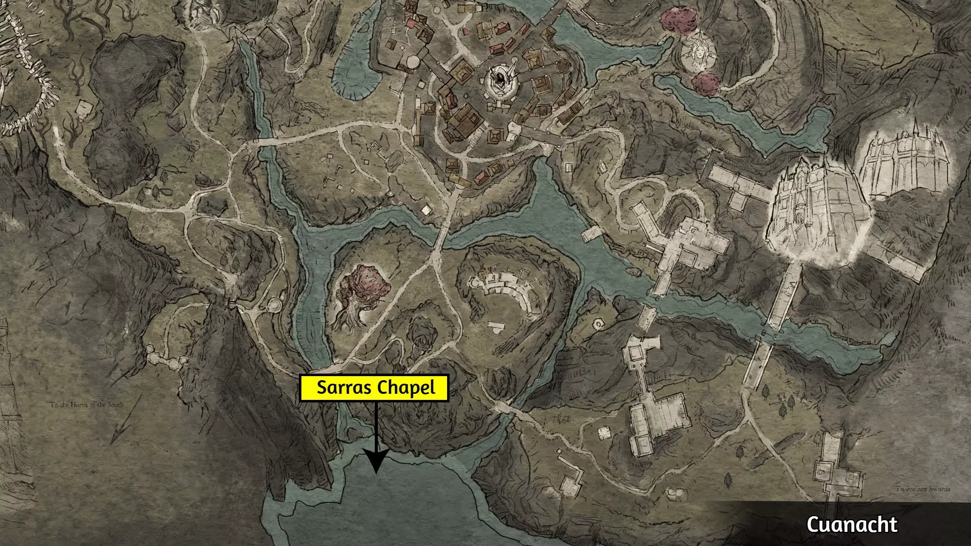 解锁该成就需要进入《萨拉斯圣所》DLC新增的区域。要进入该区域,你必须已在本体游戏中推进至第二幕。在库阿纳赫特或孤剑之地放置营火,之后会有“迷失者”接近你并开启任务“深渊降临”。 前往下图所示位置的萨拉斯礼拜堂,跟随游戏内任务标记穿过礼拜堂,最终会到达码头尽头有一艘小船的区域。与小船互动即可启航前往新区域,一段过场动画后,该成就将解锁。
