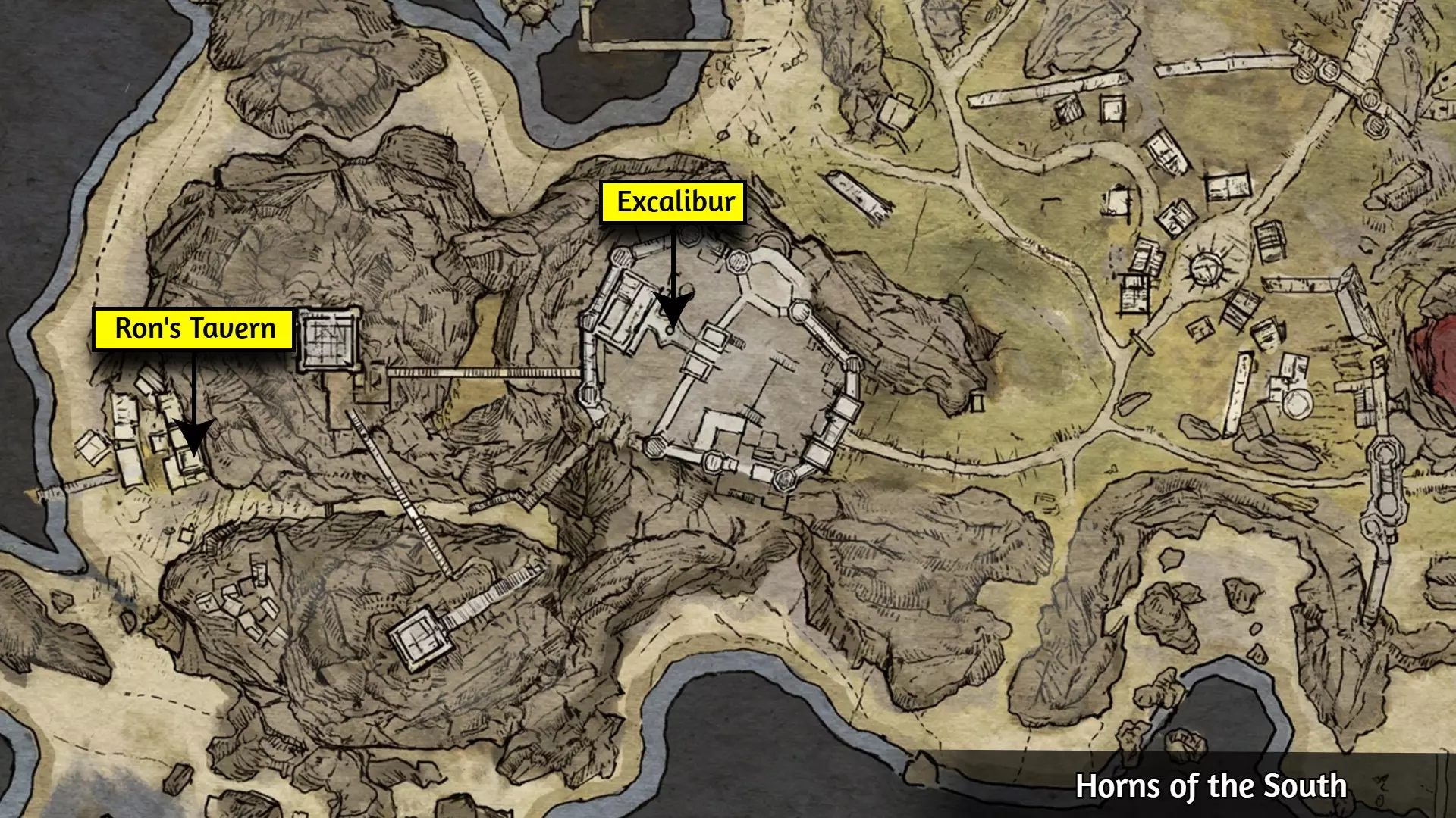 警告:在拔出王者之剑前,请手动存档,并确保在解锁成就后重新加载该存档。若未完成主线任务就推进剧情,将导致无法解锁成就“Justice Delivered”和“The Keepers of the South”。 “By My Own Hand”成就必须在主线任务“一个值得赢取的世界”过度推进前解锁,因为该任务会提供拔出王者之剑的“帮助”,从而使该成就失效。最后一个仍可激活的任务目标是“我已准备好一切。现在可以修复铜锣并执行守护者的古老仪式。”在获得此“帮助”前尝试拔出王者之剑,会导致你的生命值快速流失并死亡。请按照以下步骤解锁成就。步骤1:从罗恩酒馆购买10份炖牛肉和10份猎人炖菜(位置如图所示)。任何能恢复生命值的强效消耗品也可以使用。这些食物在游戏初期很容易获得。 步骤2:确保国王之魂能量条已满,然后前往王者之剑所在位置(位置如图所示)。 步骤3:快速食用所有炖牛肉和猎人炖菜。激活国王之魂能力以减缓时间,然后立即按住互动按钮开始拔出王者之剑。