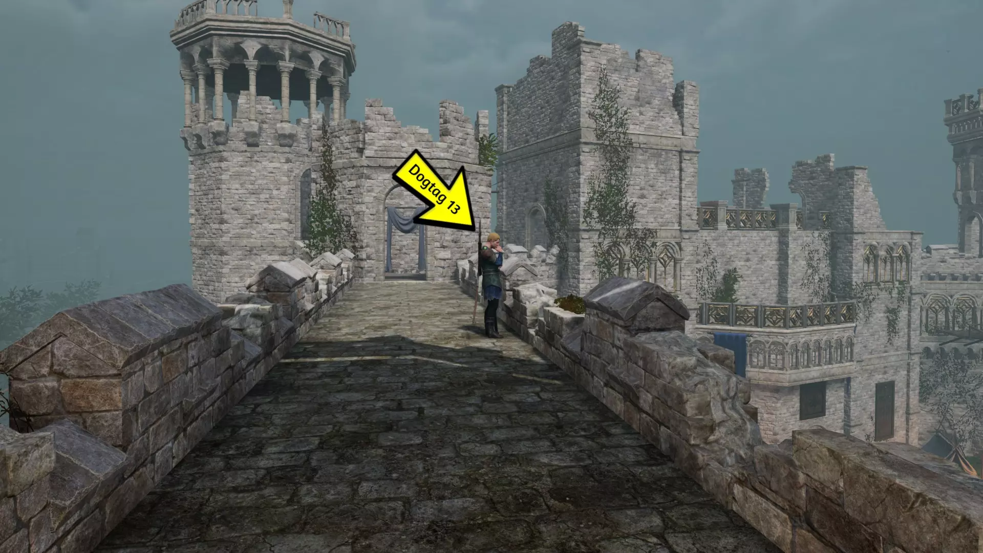 卡拉多克是游戏一开始帮助你逃出监狱的人。你需要在离开序章前杀死他,以解锁【Double Identity】成就。关于如何杀死他的详细方法,请参考【No Chains, No Destiny】成就。 杀死他后,拾取以下装备: - 游侠兜帽 - 游侠护手 - 游侠胸甲 - 游侠护腿 - 游侠战靴 完成序章后,立即装备他的全套装备,前往下图所示位置。与他对话即可解锁成就。