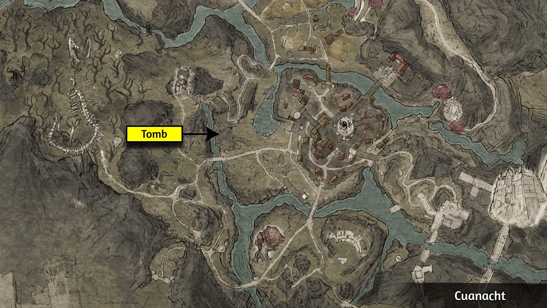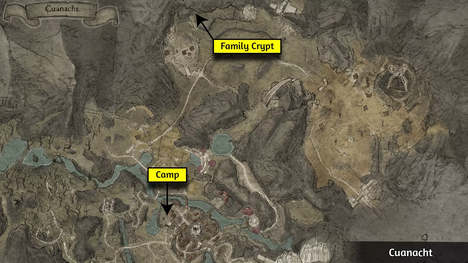 步骤1:创建手动存档,以防出现错误。 步骤2:前往下图所示位置的营地。与文交谈,耗尽所有对话选项。 步骤3:与同一营地的登霍姆交谈,选择以下对话选项: ▸ 卡梅洛特为什么选择派你来库阿纳赫特? ▸ 你是怎么活下来的? ▸ 他们被埋在哪里? ▸ 我可以帮你清理地窖。 ▸ 离开 步骤4:前往下图所示位置的家族地窖,然后阅读中间石棺底部的石碑。 步骤5:返回文处,选择以下对话选项: ▸ 你说得对。登霍姆是你的父亲…… 步骤6:前往莫里根谷报告,选择以下对话选项: ▸ 文死了。我很抱歉。 ▸ 那之后会发生什么?▸ 我只需要睡觉吗? ▸ 离开