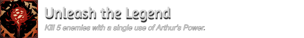 “Unleash the Legend”的描述存在一定误导;你无需用亚瑟之力击杀敌人,只需在亚瑟之力激活期间完成击杀即可。以下是建议的位置和一些注意事项。 你只需进行最后一击,这意味着你可以先削弱敌人,激活亚瑟之力,然后在其持续期间完成击杀。 如果遇到困难,你可以从简恩处购买洗点药水(位置如图所示),并重新分配灵魂点数。