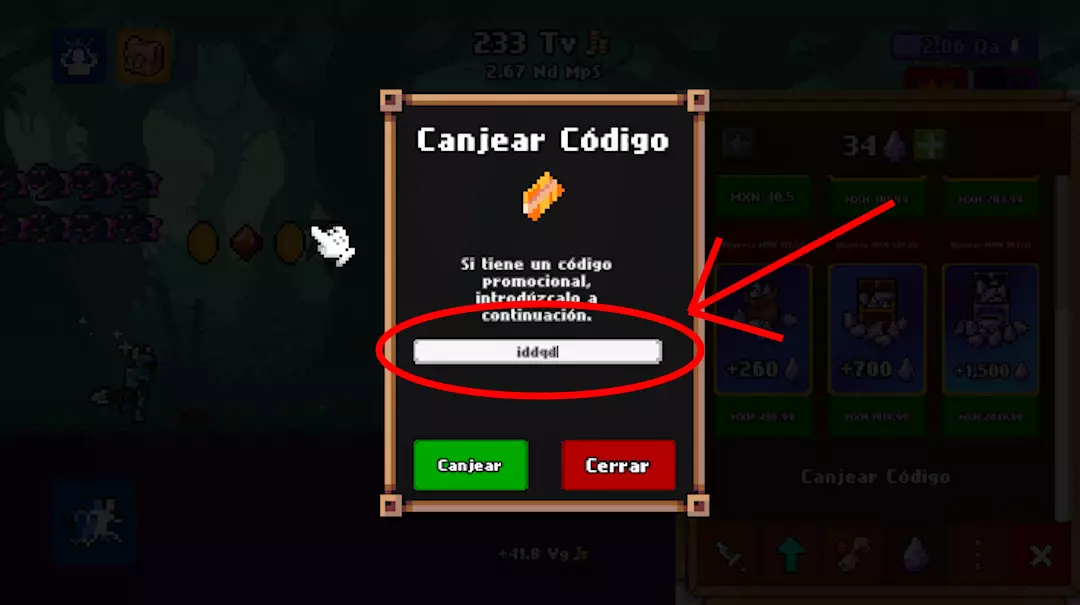 3. 打开【灵魂水晶购买】商店,下拉至底部并点击【兑换代码】按钮。
