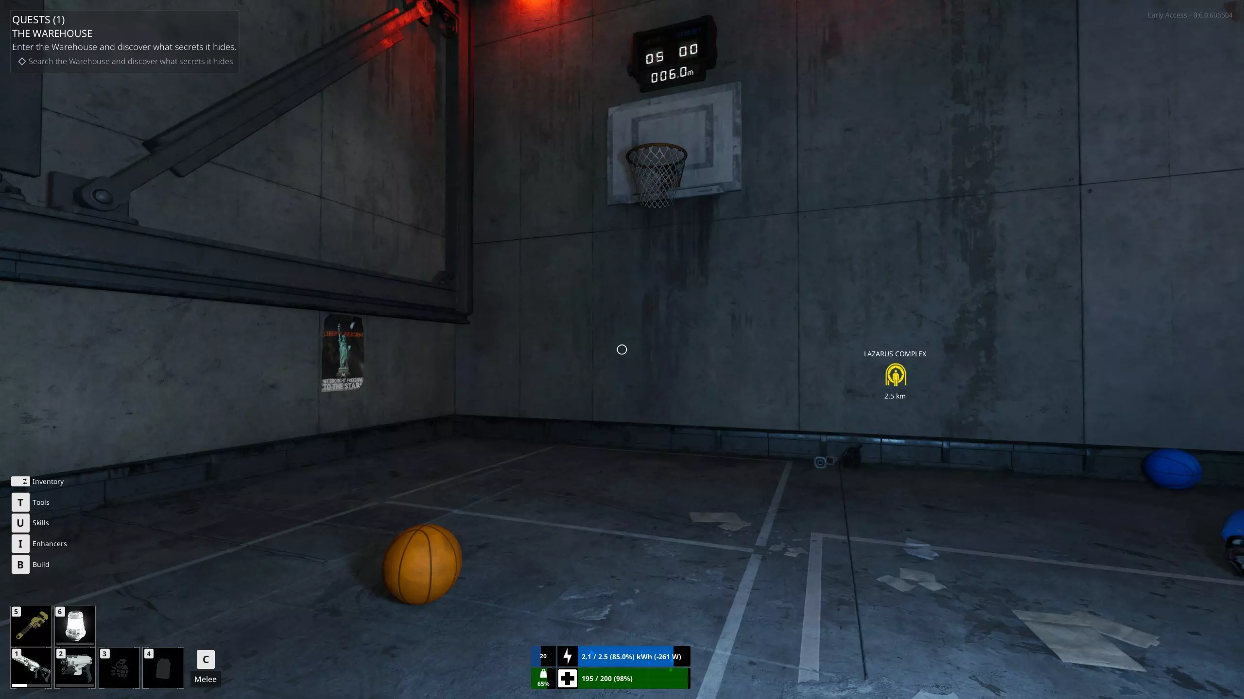 寂静五连中 在空球场上连续投进5球。 →你可以搭建一个平台直接投进去,或者在合适的距离直接将球投进去。 总共需要连续5次投进5个球。 位置:中央仓库阿尔法 这里是我的位置和目标高度的图片。