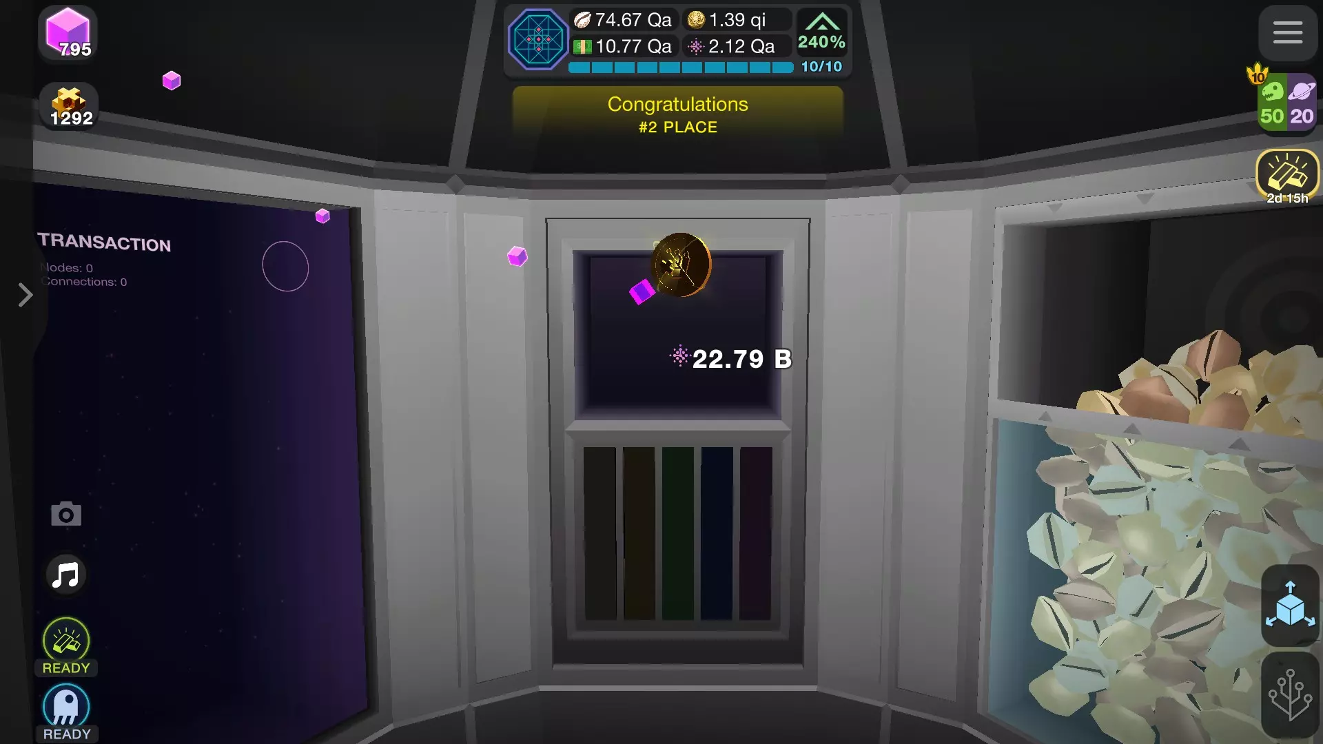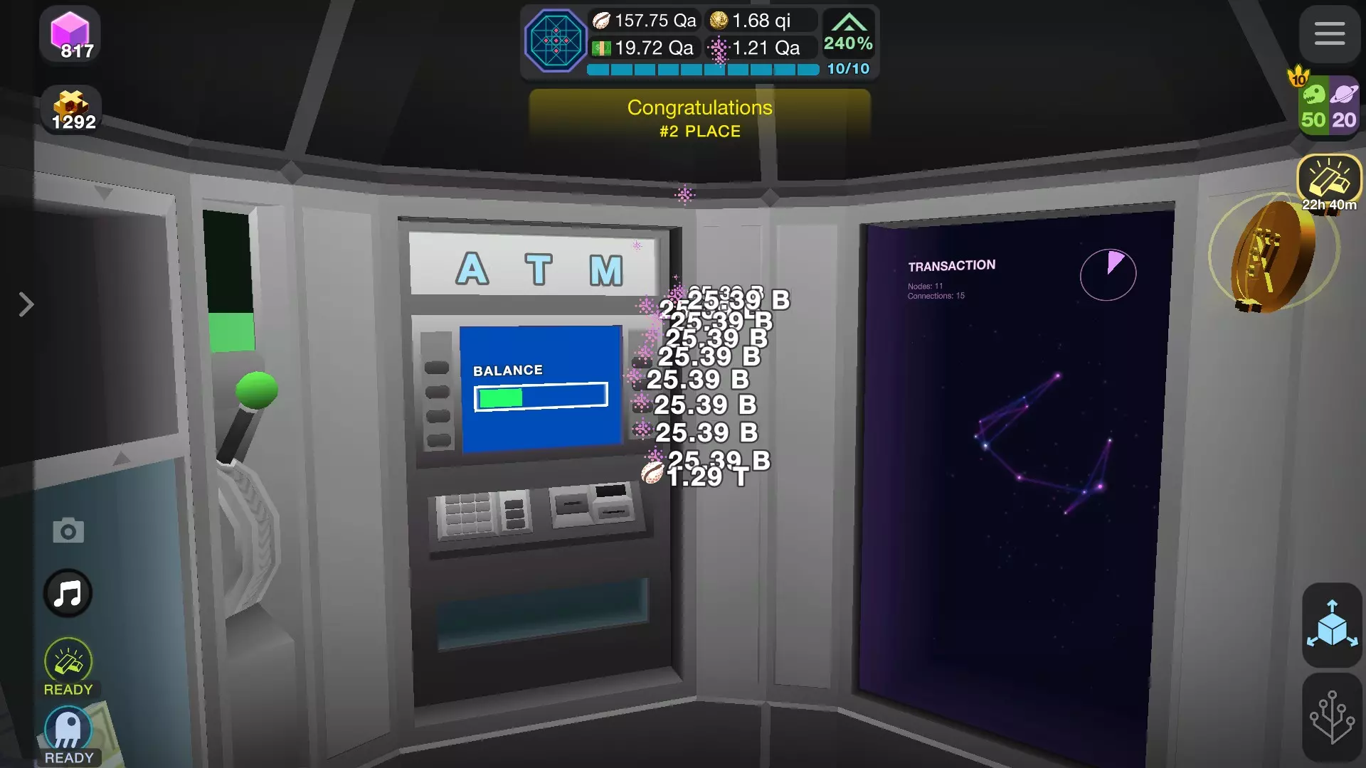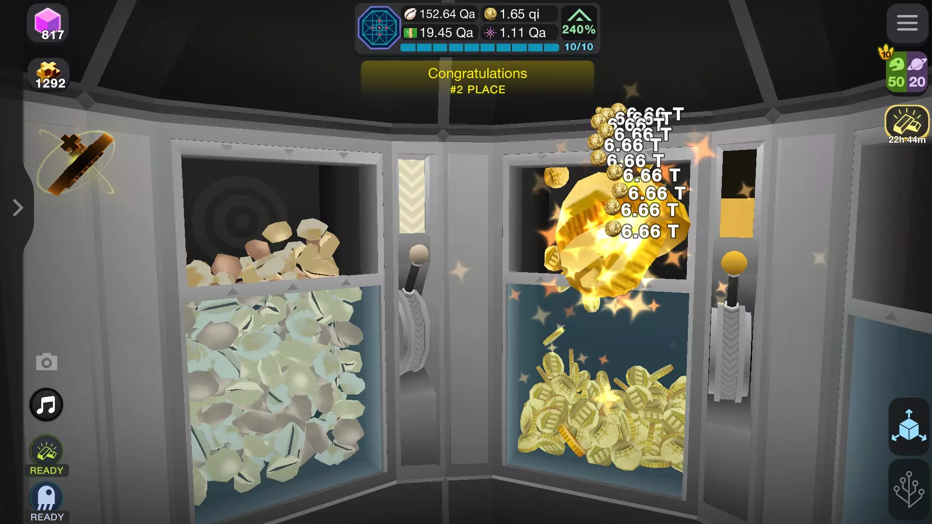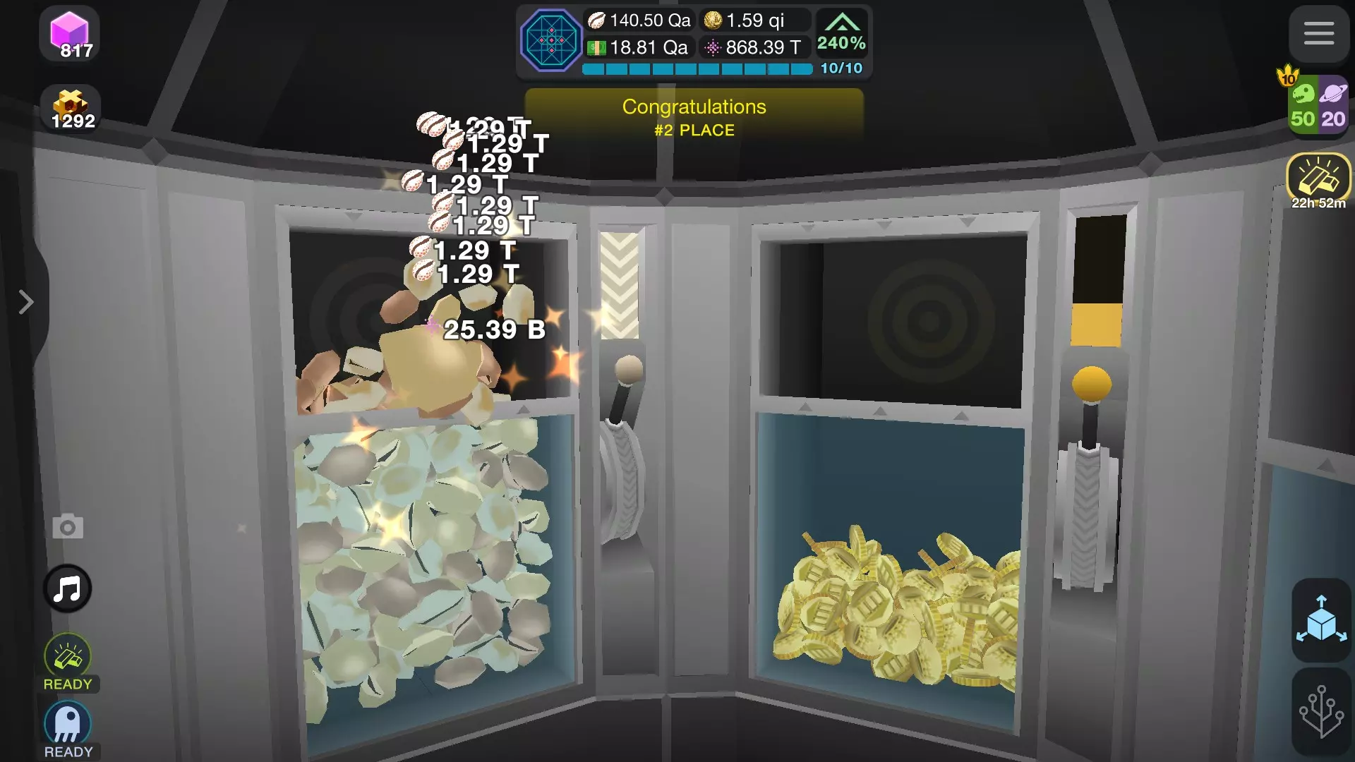 填充保险库 连续点击直到保险库填满(右侧进度条为指示器),填满后,下拉操作杆(按住点击单臂匪徒图标并移动光标,或点击转移按钮)。保险库内容将存入达尔文ium区域。