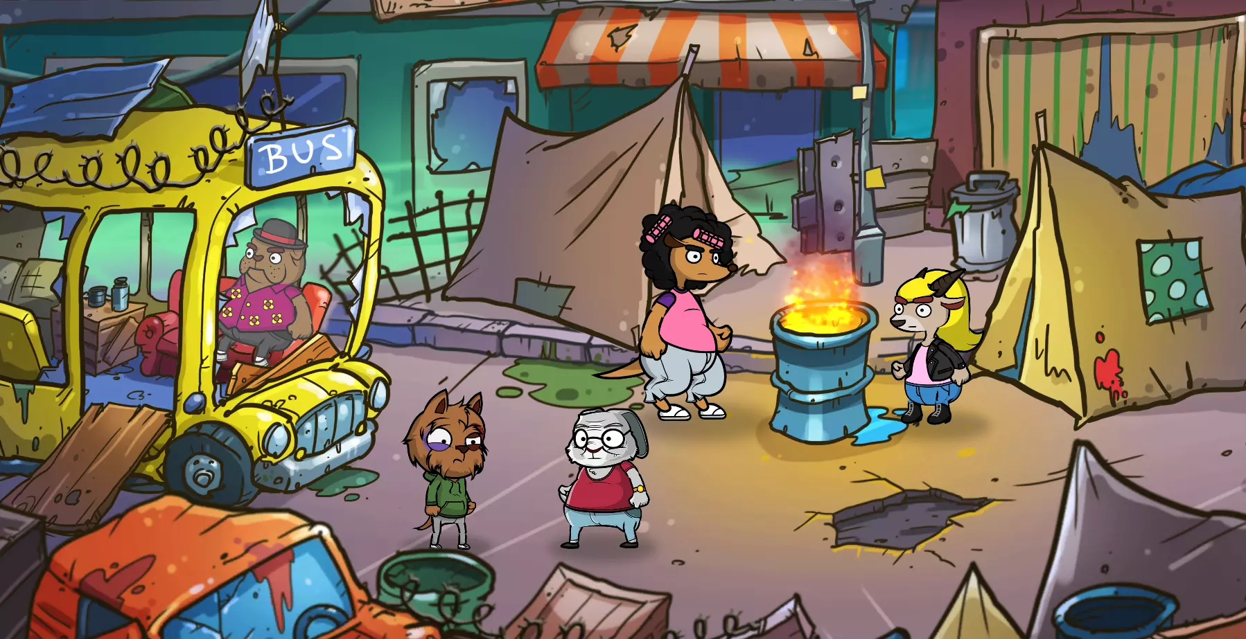 地点3:公交站营地(清理牛头犬!) 下一个目的地是公交站营地,在这里你终于可以清理掉那个傲慢的牛头犬了!