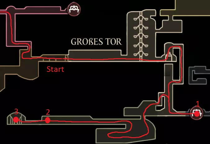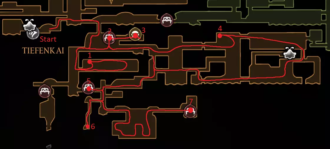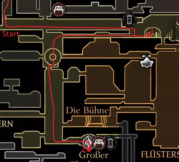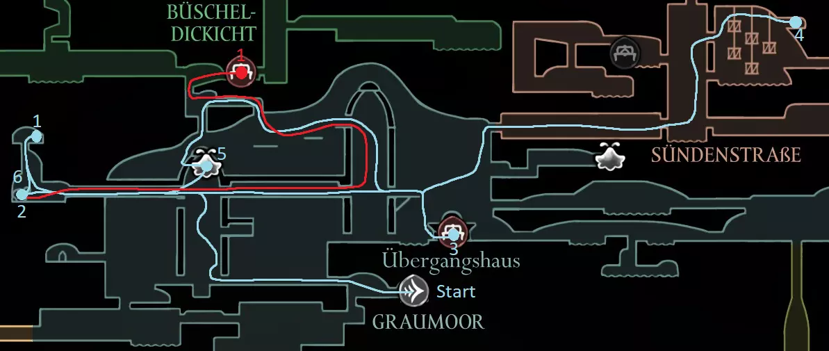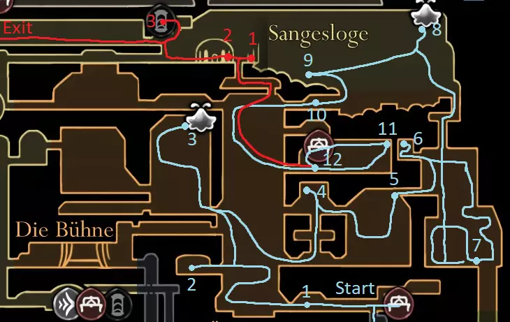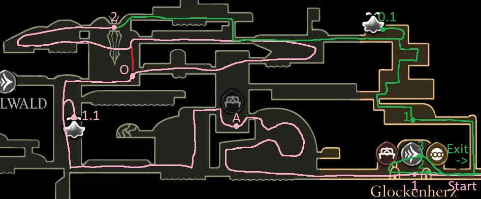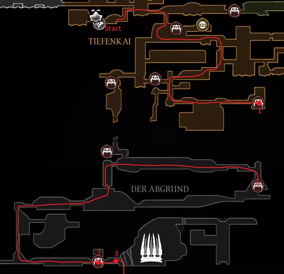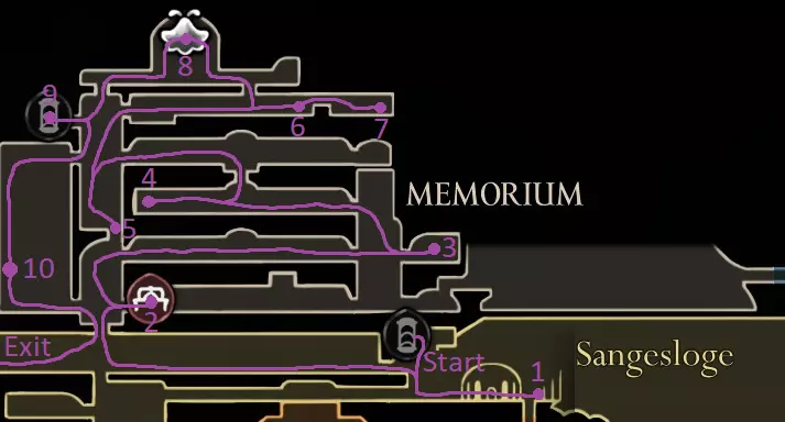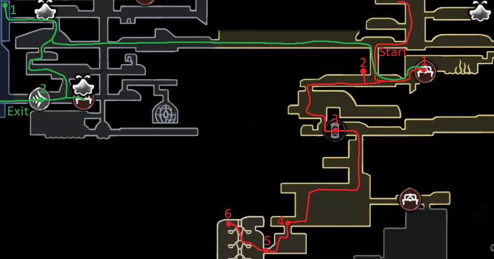 红色路线:与巴洛对话并潜入深渊 休息点 击败失落蕾丝 抱歉花了这么长时间,我在路线规划上遇到了不少困难,希望没有遗漏任何内容,并且这仍然对你有帮助。 祝你的游戏顺利! 刷念珠 你一到达歌之clave就可以开始在这里刷念珠,但在1击败发条舞者和2解锁高厅后效率会更高。在困住祖母丝绸后效率会降低,所以我在那之前规划了大部分念珠的获取路线。 沿着这条路径跑,途中击杀5个敌人,并在任意一侧的休息点休息。