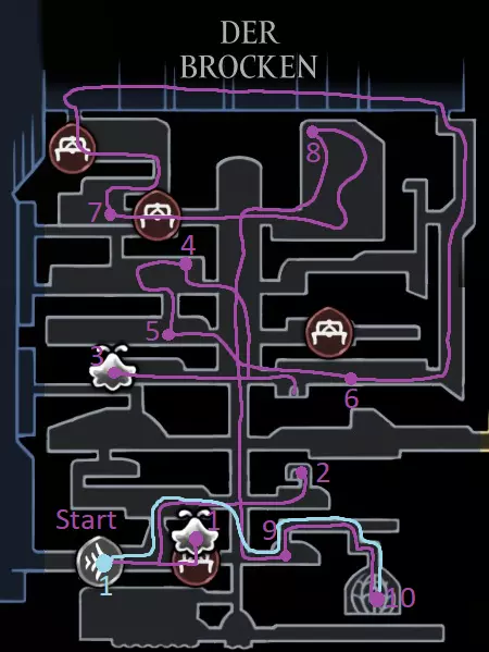 浅蓝色路线:制作皮米皮洛(工具:33/52) 接受侵扰行动愿望 工作台 获取钢刺(160)并返回工作台 获取跳蚤(28/30) 治愈诅咒 红色路线:前往工作台并重新装备纹章/工具 灵雾灌木丛