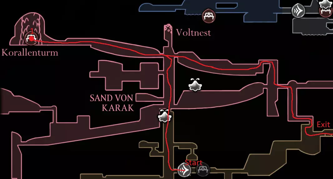 红色路径:贝尔韦通往大贝尔韦,文特里卡通往记忆之地 获取苍白之爪 卡拉克之沙 2