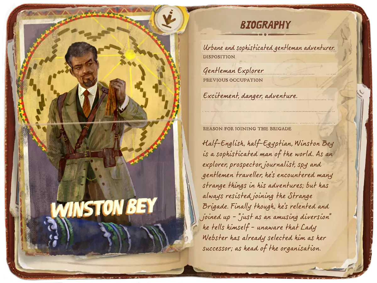 角色(发布后奖励) 介绍 在游戏发布后的前30天内,所有购买《异域奇兵》的玩家可免费获得温斯顿·贝。温斯顿也包含在季票、豪华版以及【绅士探险家角色包】DLC中。 游戏内角色描述 温斯顿·贝(前绅士探险家):“温斯顿的旅行赋予了他与其经历相符的强健体魄,他的埃及血统增强了他与护身符的亲和力。” 游戏内日志传记