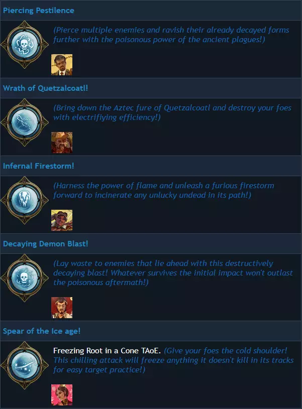 被动技能 介绍 奇异小队的每位成员都拥有两个被动技能。其中部分技能为角色特有: 【吸血鬼打击】(纳兰古·鲁希达) 【强力一击】(格蕾西·布雷斯韦特) 【敏锐寻宝者】(阿基米德·德·昆西) 部分技能效果看似相同,但名称不同: 【强效灵魂光环】与【灵魂大范围收集】 【坚韧外皮】与【额外生命值】 【超级爆头】与【爆炸爆头】