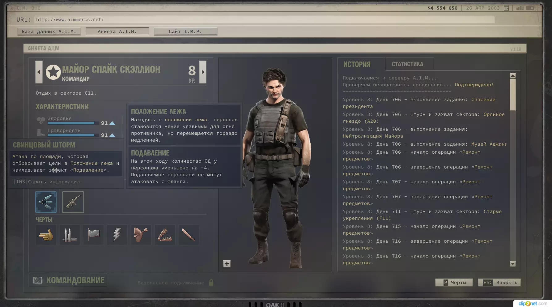 斯派克位于A20区域。这是一座有着军团精英部队驻守的堡垒,为了增加紧张感,一旦他与你的小队交火,就会下令其他人处决拉方丹总统。避免总统死亡的最简单方法是带上两支小队或迫击炮。地图上有2-3个落单的敌人,可以轻松通过潜行暗杀解决。建议从地图上总统帐篷所在的高崖边缘发起突袭。战斗最好从迫击炮开始,用它向帐篷入口和通往帐篷的路径“覆盖”瓦斯。这能消灭所有试图刺杀总统的人。敌人很多,可以大胆地用瓦斯覆盖整个通往帐篷的上坡路段,包括靠近己方队伍的区域。当你赢得战斗后,与少校交谈,之后需要进行影响力检查。问他为什么试图刺杀总统,然后回答:“斯派克,你和我们一样都是雇佣兵。”不要说比夫是他的朋友,否则你会失去影响力。同时避免使用“你会为此付出代价”这种说法。 说完这些话后,你应该会得到“那如果我们雇佣你呢?”的回应。接受他,斯派克就会成为你队伍的新成员。 关于影响力的检查。如果你太早去找他,就无法雇佣他。尝试占领3-4座矿场,解放几座城市,夺取几个塔楼。 【天赋相关信息】