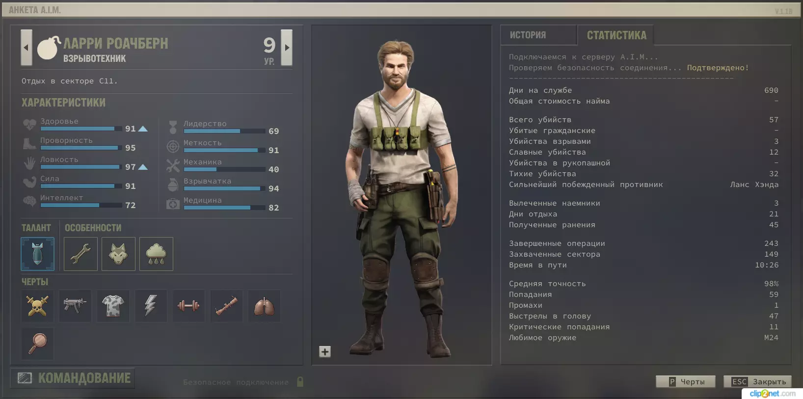 结论 为什么我认为就这样结束了呢? 首先,如果通过AIM招募雇佣兵,招募全部5名的话,正好能组成一个6人的完整队伍。其次,那些我怀疑可以招募的游戏角色,通常要么会提供独特的战利品(比如老妇人“怪物”的丈夫弗拉德会给等离子切割刀),要么会触发特定事件(比如救出比夫后,会触发前往难民营并了解福绍上校的事件)。监狱里会给一把独特的砍刀,等等。 即使从创意工坊安装了全技能和天赋的mod,也能看出总共有41个天赋。游戏中有36名付费雇佣兵和5名免费雇佣兵。