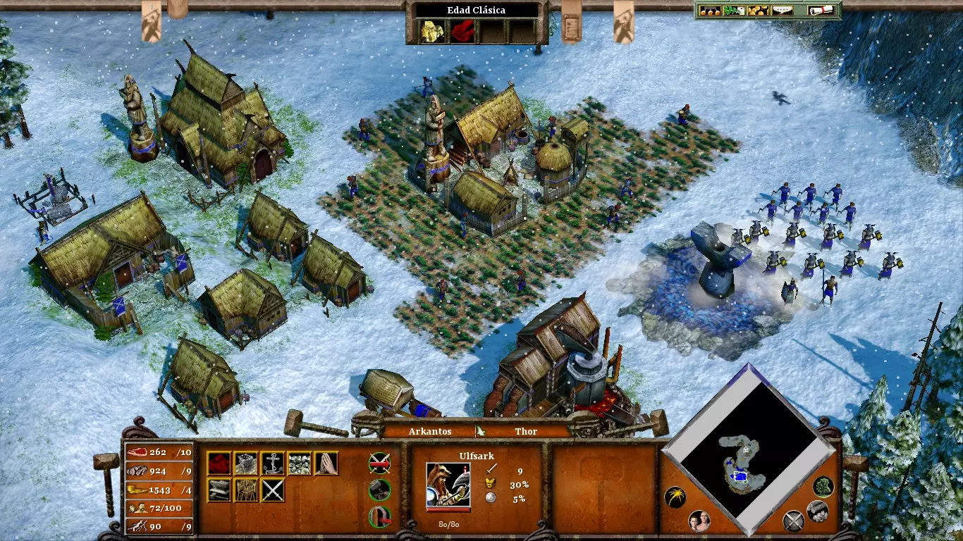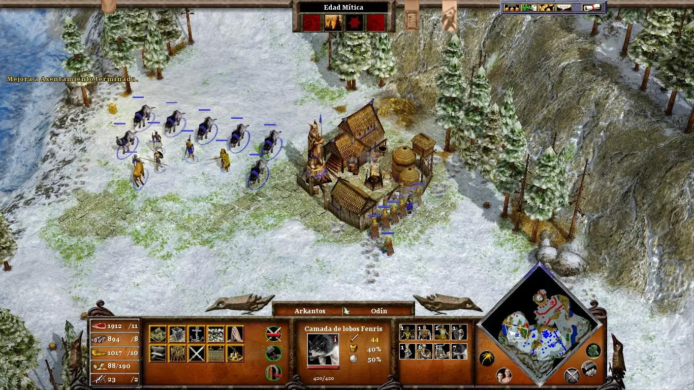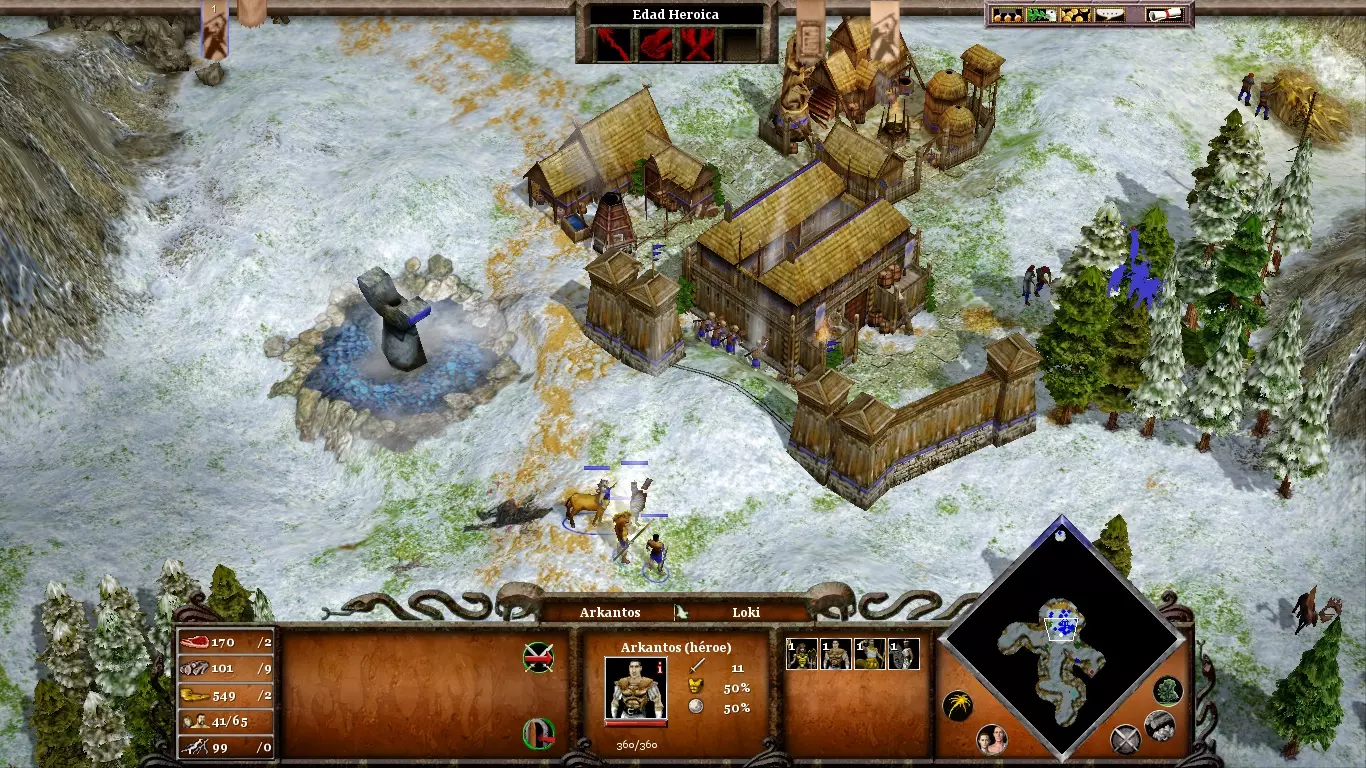 考虑到地图上到处都是狼,所以在移动任何单位时,最好让某个英雄始终保持在相对较近的位置。只有他们才能对抗一群饥饿的狼。占领南部的定居点(尽可能远离敌人的防御工事)并用城墙围起来。尽快建造【hensires】以应对即将到来的狼群袭击。在围攻北欧神庙时,不要忽视你的村庄;即使敌人失去了一些修道院,他们仍会继续发动攻击。