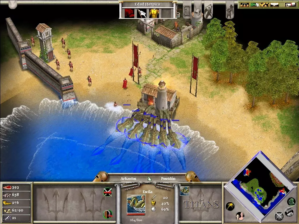阿尔坎托斯对人类单位效果一般,但对神话单位效果显著。用他近战对抗克拉肯,就能见识到其威力。加农炮是对抗海盗船的有效武器。只需要训练毒箭手;敌人通常会派出步兵。当你的援军距离一英里时,激活“降雨”神力。差不多在那个时候,敌人会释放“闪电风暴”;如果你的神力仍在生效,他们就无法释放这个技能。保留“治愈”神力,并在最终战斗中使用。