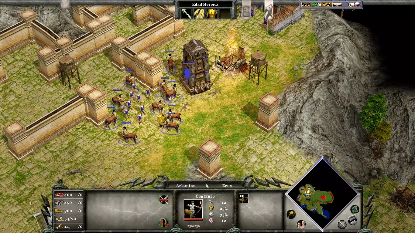 许多半人马将加入你的阵营。因此,发展“森林智慧”来强化他们是完全值得的。部署你的部队,让阿贾克斯和阿尔坎托斯承受敌方单位的伤害。让半人马保持在安全距离,并确保攻城塔始终完好无损。对于最终攻城,你可以招募一些人类士兵来充分利用“青铜”(我认为希波基翁是执行这项任务的最佳选择)。