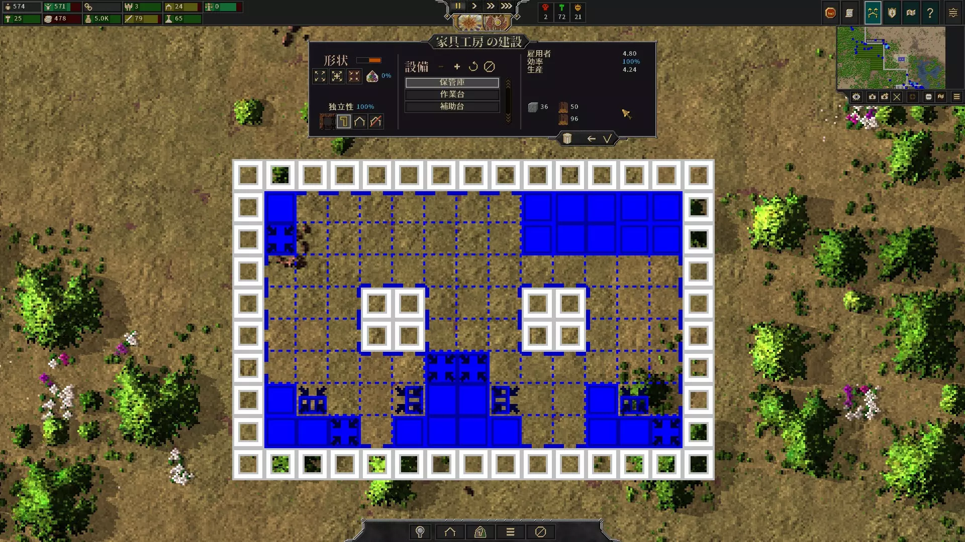 在中央附近区域削出柱子可以解决耐久问题 ・可以开启/关闭外壁自动设置 市民的种族各有“矩形”“圆形”的偏好,通过“形状”计量条可以确认当前建筑计划偏向矩形还是圆形 2. 安装必要设备