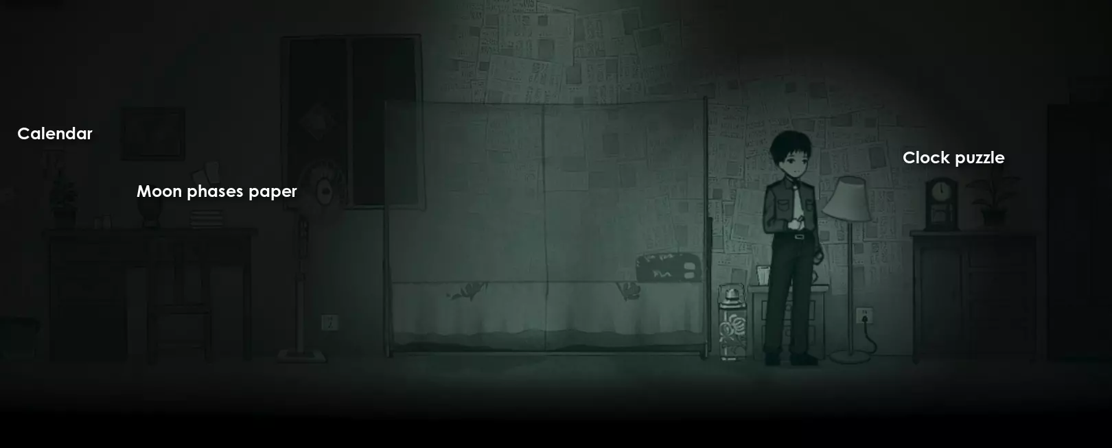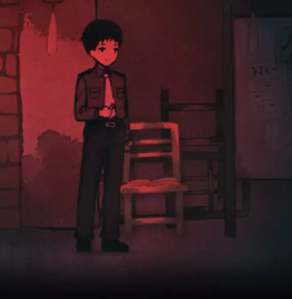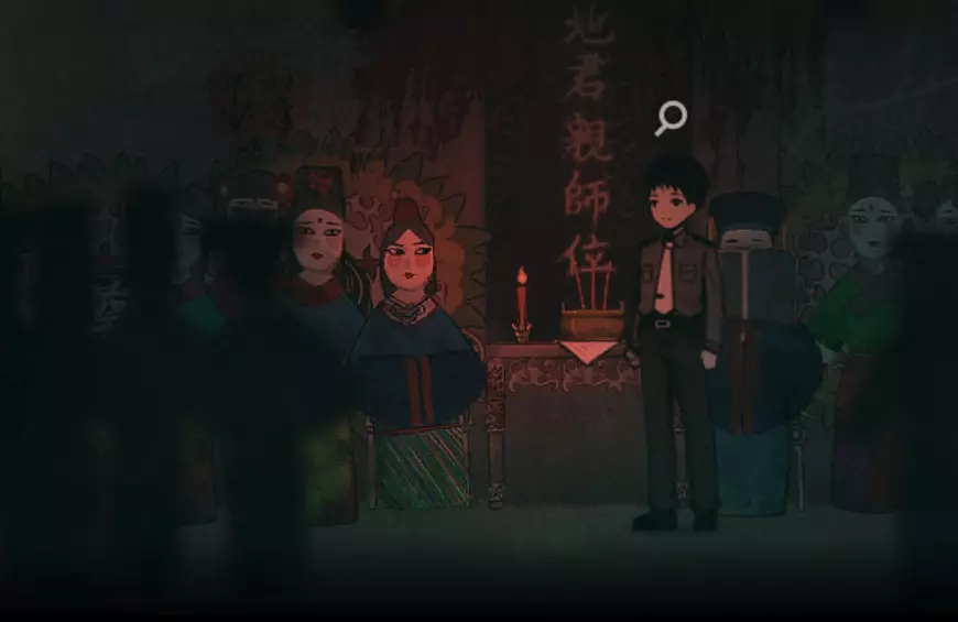 回到室内,桌上放着红色蜡烛的那部电话会响起,接起电话。 通话结束后,电话右侧的肖像画会发生变化,查看它可以找到音符。向右走,回到门厅。 在前门处你会进行一段对话,并有其他人加入你。 正如游戏提示,现在你可以重新访问一些地方获取更多信息,但遗憾的是只有两处新内容。 先查看门厅里的日历,了解一些关于这个家庭的信息,然后回到客厅,与电视左侧肖像画上的音符互动,获取密码。 回到门厅,输入密码5358后离开。 第三章 你会回到门厅,但这里有些不一样了。与你右侧墙上的破损书页互动以触发场景,然后向左走,与墙上挂着的玩具相机互动。 这会使艺术风格发生极大变化,你可以再次使用玩具相机反转图像,但暂时保持当前状态。使用左侧的门。 你再次回到客厅,向左走并与红色图画互动,现在使用房间右侧的玩具相机反转图像,回到“正常”状态。 向左走到你看到红色人影的地方,与桌子互动,然后选择移动雕像以找到一页日记。 阅读日记,并按照页面底部的指示按以下方式折叠:向下、向上、向上、向右、向左、向下。如果操作正确,将开始一个场景,在需要时进行互动。你将控制一只蝌蚪,操作非常简单,只需四处移动并进入每个红色圆圈进行互动,获取一些对话。 现在你在一间教室里。 稍微向右移动,使用这里的互动点。