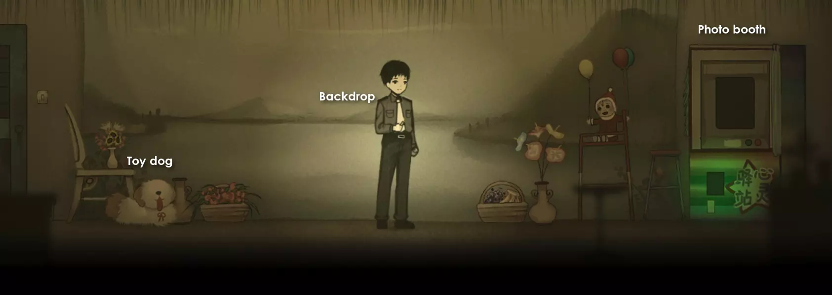 与它互动并按照提示进行场景切换和对话,最终你会进入一个照相馆。