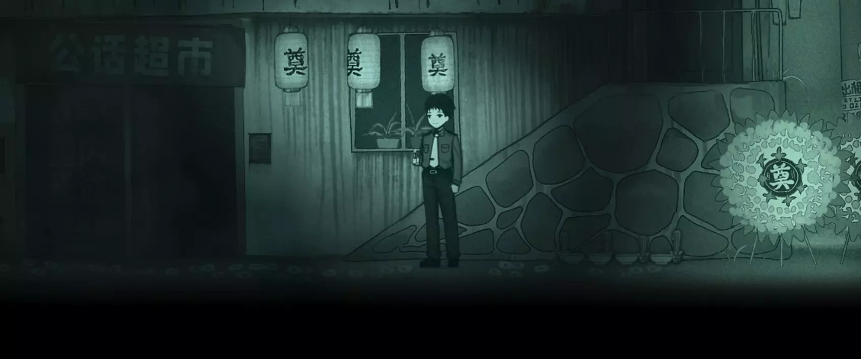 查看照片(他是不是很眼熟?),然后检查棺材右侧,找到互动点。 使用所有三个选项检查各个区域(盖子/内部/周围)以获取有用信息,完成后退出。 离开房间,向左返回上一个场景,继续向左走,会看到商店附近有一个女人。现在尝试向左离开,然后向右移动,会发现一个纸人挡住了去路。 与纸人互动,然后向左移动并与花圈互动,接着与商店橱窗上的骨灰盆互动。 你会在灰烬中找到一本账簿,情况不太好,但至少现在可以向左离开了。 走向车辆以完成序章,并获得【鬼在人心】成就。