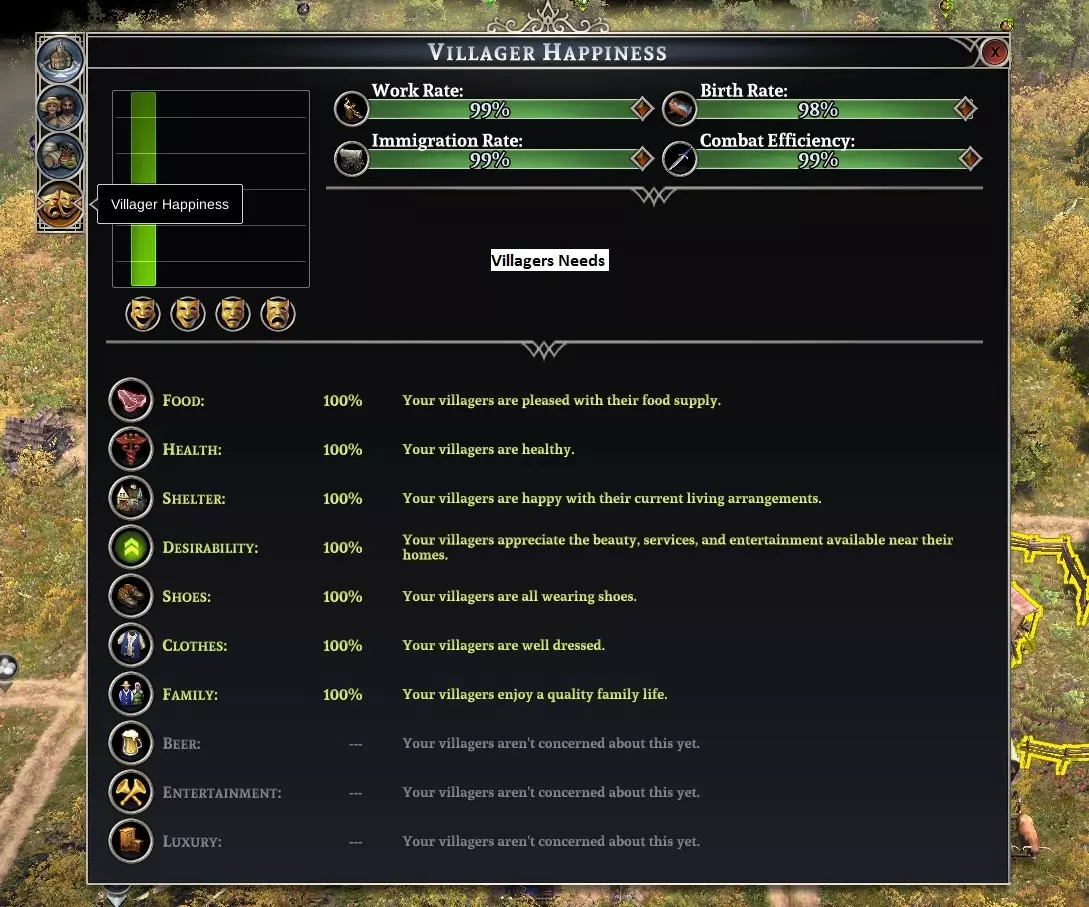 你需要在人口增长和增建更多支援类建筑之间找到平衡——因为随着人口增长,居民的需求也会增加。养活50人和养活500人肯定是不同的。一名治疗者一天能接待的病人数量是有限的。 你可以使用的用户界面元素和控件 大多数弹出窗口的面板上都有一些有用的控件。其中一些对我们的需求非常有帮助。