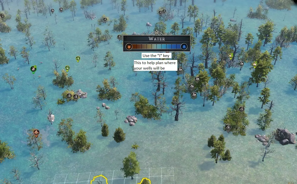 现在让我们来看看水,因为水对于任何正常运转的社会来说都是必不可少的。按I键打开覆盖层。再次寻找合适的位置来建造水井。