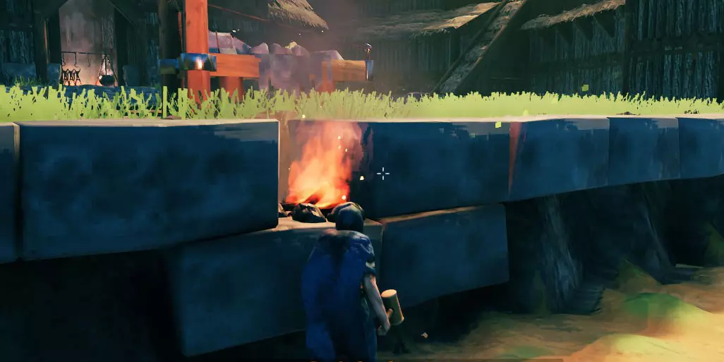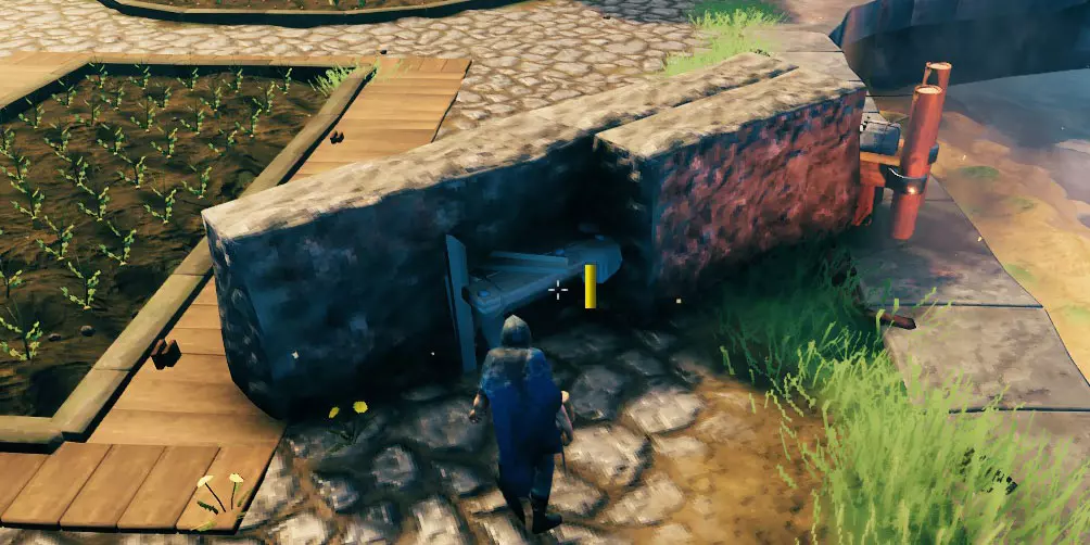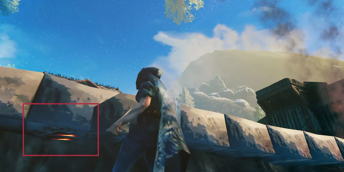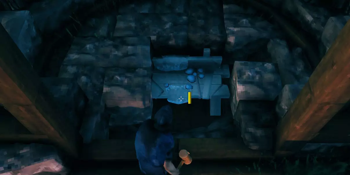 下面我会指出第三份指南【黑森林】中的重要信息,为确保万无一失,不妨再回顾一下那份指南,确认你已完成基础准备工作,避免基地被摧毁。 获得第一块铁后,你就可以制作并使用石匠台(参见上文的【熔炉升级】部分),从而终于能够用石头建造建筑了。以下是不同墙壁的对比: 木墙 - 耐久度:400 stake墙 - 耐久度:1000 石墙 - 耐久度:1500 由于是石头材质,例如 troll 之类的敌人对其造成的伤害会更低。 但不要被误导:如果你没有按照我在上述链接中给出的建议去做,那么所有这些建筑部件都只能为你争取时间,让你有机会出去战斗。不过这样做也没什么问题!至少如果你足够快能及时逃出去,不像我…… 基地建造:结构完整性 另一个需要注意的是,使用石头可以建造得更高。 石头结构有其自身的完整性数值,在达到该数值之前,如果你在石头结构上建造木制部件,这些木制部件会显示为蓝色。因此从技术上讲,对于木制部件来说,石头结构会被视为地面/地板。 使用铁以及木铁梁/铁柱可以进一步延伸建造高度,你可以稍微尝试一下——你可以轻松地将它们隐藏在石头内部,或者在木墙、芯木梁等结构之间。如果你需要或想要尝试建造非常高的建筑(例如法师塔): 你可以通过将地面抬高8米,然后使用石头、铁梁和木材来达到最大高度。 如何获取大量石头: 建议不要挖掉所有的小岩石。否则地形可能会变得空旷乏味,而且获得的石头数量也不多。 有一些大型(相当平坦的)巨石——通常在草地的海岸线上,在黑森林中也遍布整个区域。开采这些巨石可以获得几堆石头。 为了高效开采,你可以在那里放置一个可移动的传送门:快速传过去,采集一些石头,卸载,再返回。当你挖完一个巨石后,就转移到下一个。 海岸边的巨石有时很难完全开采。如果你不想冒险让它们的某些部分残留(因为水太深),那就选择那些在较浅水域的。 暴风雨期间,海浪有时会把水从你身边移开,所以你或许有机会用镐子挖得更深一点。 或者你也可以去多挖些铜,反正你可能也需要铜来制作装饰。 如果你在沼泽探索过程中不是特别急需它们,也可以等到进入下一个生物群系。那里会有很多巨大的岩石和圆石。 为你的基地增添乐趣(装饰与实用兼具) 隐藏工作台和其他阻止生成的物体 要是能用一些既实用又美观的方法来隐藏基地里的物体,那不是很好吗?我很乐意至少提供一些建议,这样你就不必把整个区域弄得乱七八糟,也不用在杂物间绕来绕去了。我会以自己当前的游戏进程为例,给出一些建议。 注意:我主要喜欢使用工作台来实现这一点——这样我就能轻松修理(至少是所有木制结构),并且能在建筑菜单中选择建筑部件时,查看是否还有任何未受保护的缺口。 石板与火 在这个区域,我不想掩埋任何东西,因为我希望保留正常的地面。因此,我决定在码头的石板内隐藏一些火堆(我的基地周围通常有陡峭的边缘,我在这个位置使用石板来覆盖它们,让外观更美观)。