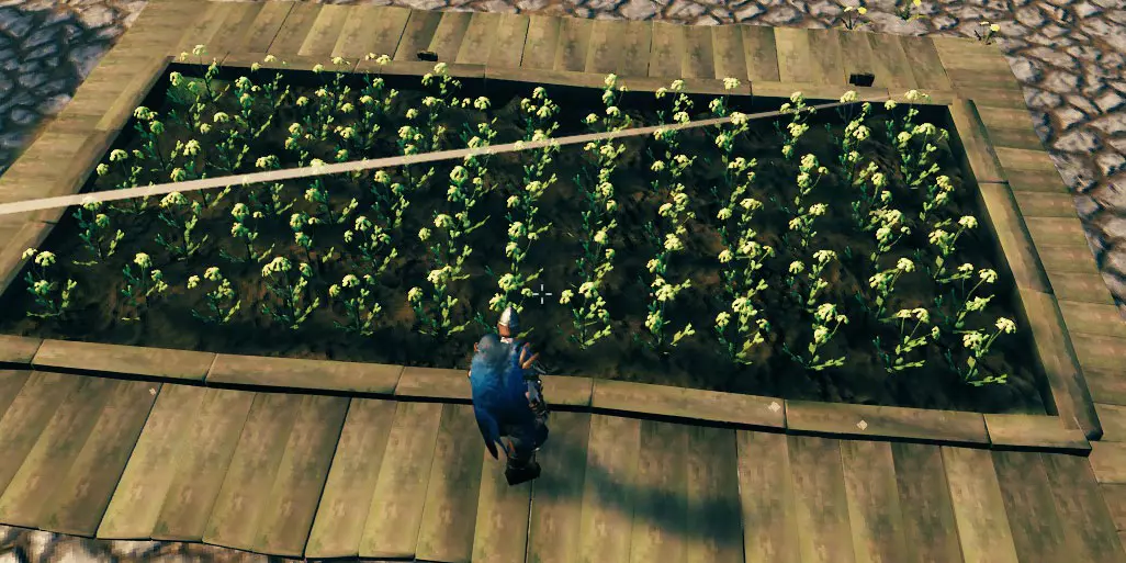 为了能够获取下一级食物,除了铁之外,你的首要任务是寻找一种亮黄色的花朵。 这种花可能非常非常稀有,所以如果运气不好的话,你可能需要花相当多的时间才能找到它们。我能给你的加快这个过程的最佳建议是,沿着附近沼泽的岸边航行,尝试寻找这种花。如果你找到了:迅速在地图上标记它,注意不要停下你的船。最好先侦察一下周围区域,看看能否在该区域附近的草地或黑森林登陆,然后步行前往那里,这样可以避免丢失你的船。 注意:我最近开始了一个新游戏,即使花了几个小时在很多很多沼泽的海岸边航行,也没能找到任何种子。如果你和我一样不走运:穿上不会拖慢你速度的盔甲(可能是升级后的 troll 盔甲),准备好优质食物,然后在整个沼泽里四处跑动。到目前为止,我主要在边缘地带找到它们——如果你在沿海区域运气不佳,试试其他区域。请确保每隔几百米附近至少有一个传送门,以防万一。你可以快速冲到一个新的中心位置,迅速在那里建造一个传送门,根据时间情况可能需要等到第二天,然后再去寻找!至少我成功找到了一株植物。 食物、升级和蜜酒