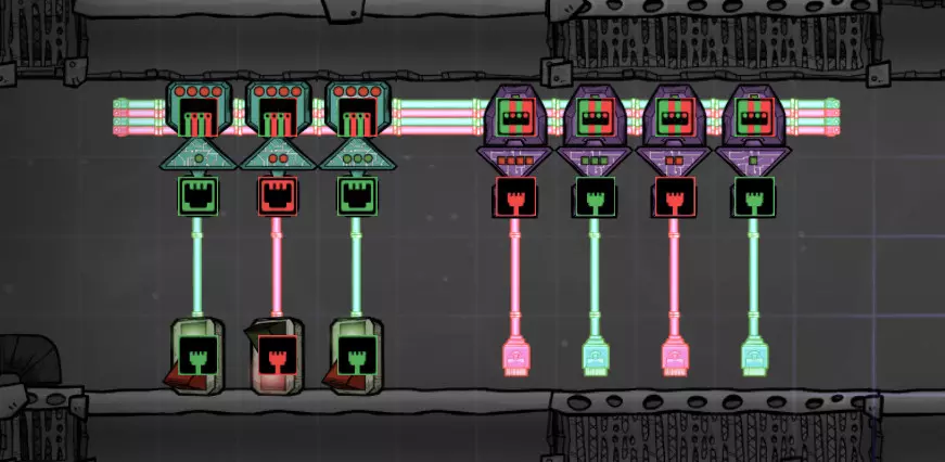 自动化:在工业、管理和科学工作中,无需人工干预即可自动完成任务。简单来说,自动化就是教游戏中的机器在何种条件下如何运作。为了判断我们设定的条件是否正确,我们会使用传感器,而将传感器连接到机器则需要使用自动化线缆。 我用游戏内的一个例子来解释我的意思。 如你所知,游戏中每种植物都有其特定的温度范围。如果植物的温度处于这个范围内,植物就能生长,否则就无法生长。假设我们想要种植Pincha Peppernut(小辣椒),并且我们希望种植环境的温度为25摄氏度。查看平查·佩珀纳特(Pincha Peppernut)的温度范围时,我们发现其温度至少需要达到35°C,这意味着我们存在一个问题。为解决此问题,你可以考虑放置空间加热器(Space Heater)。尽管这看似能解决问题,但单独放置空间加热器存在一个问题:即使环境温度达到40°C,空间加热器仍会继续运行。如果我们种植品查胡椒坚果(Pincha Peppernut)的环境并非完全密封,那么在环境温度升高后,损坏空间加热器(Space Heater)并不是一个解决方案,因为产生的热量会扩散到周围,一段时间后温度会再次降至35°C以下,我们需要重新升高环境温度。 在这种情况下,我们需要让空间加热器(Space Heater)学会何时工作、何时停止工作。 要做到这一点,我们可以在空间加热器(Space Heater)旁边放置一个温度传感器(Thermo Sensor),并将两者连接起来。温度传感器会获取环境温度,并根据我们设定的条件进行判断,然后向空间加热器发送正确或错误的信息。空间加热器在收到正确信息时运行,否则停止运行。这样我们的问题就完全解决了。 当然,游戏中遇到的所有问题并非都如此简单易懂,但为了解释自动化的基本工作原理,我选择了一个简单且易于理解的问题。 为什么要使用自动化? 上面提到的问题,我们当然也可以不使用自动化,而是在需要时发出必要的指令(激活/停用或拆除/建造)来解决。不过,在我们不使用自动化的情况下,这种状况存在一些缺点:玩家需要持续监控环境温度。为了执行给定的指令,分身们必须为此分配时间。速度不够快。我想说,这些缺点中最大的问题就是第一个。因为在游戏中,我们遇到的问题并非只有这一个,需要监控的系统也不止这一个。而且随着系统数量的增加,我们将逐渐无法同时兼顾所有系统。最终,我们的系统会一个接一个地崩溃,让我们陷入抓狂的境地——如果你正在阅读这份指南,你肯定知道这是一种什么样的感受。从自动化维护角度划分的建筑类型 游戏中的所有建筑可分为四大类: 具有自动化接口的建筑