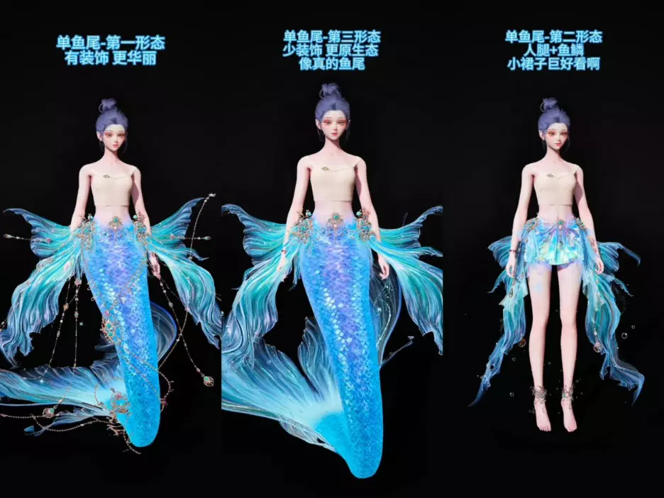 这篇帖子展示了被变成美人鱼的鸢尾,从刚发现变身的慌乱,到悄悄探查情况,再到逐渐适应后询问接下来的行程,精致的淡紫色鱼尾十分吸睛,作者表达了对人鱼形态鸢尾的喜爱。