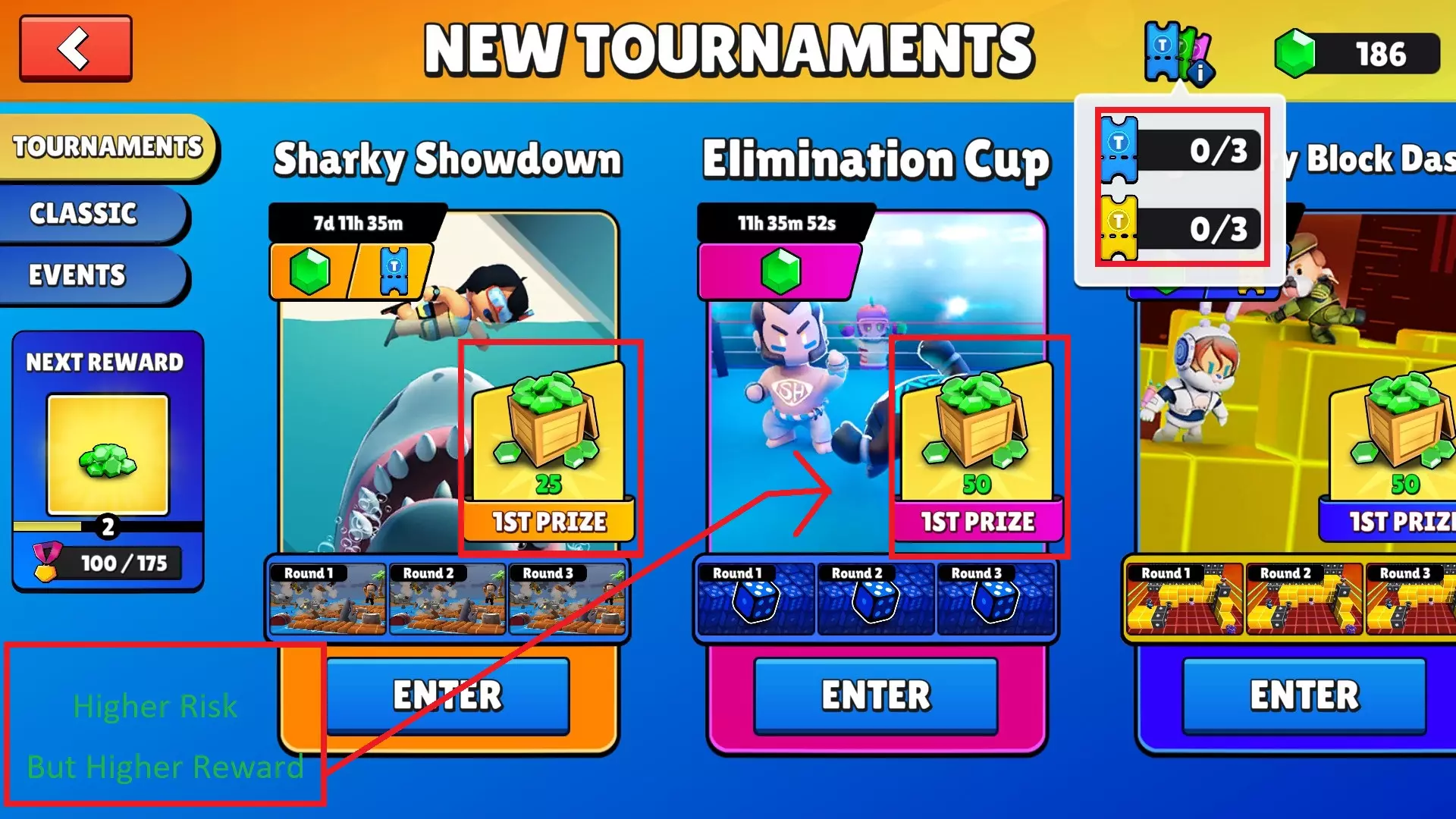 第五步:参加锦标赛(存在失去宝石的风险),风险越高,奖励越丰厚。