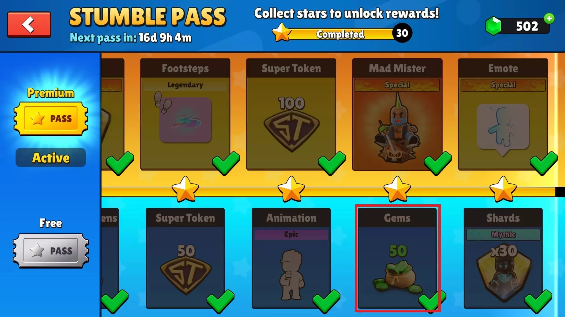 从锦标赛通行证中领取你的宝石