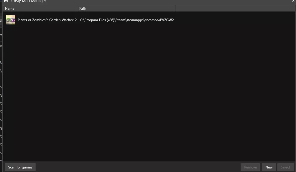 最后,解压各种程序和模组文件 第二步:设置程序 现在所有文件都已解压,你需要打开Frosty模组管理器。请注意,你可能需要以管理员身份运行这些程序才能使其正常工作。如果你之前没有使用过Frosty模组管理器,它应该是完全空白的。你需要点击【扫描游戏】。这可能需要一段时间,之后《植物大战僵尸:花园战争2》才会显示出来。