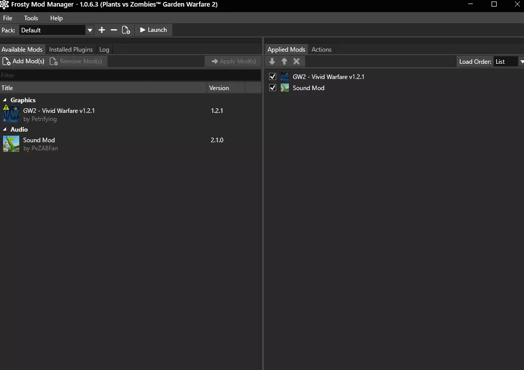 重复此操作,直到所有模组都显示在左侧。 (我只使用了【Vivid warfare】(该模组优化了光照,使游戏画面更出色)和【Sound Mod】(修复了EA一直未处理的音频和音乐问题)) 步骤3:加载、崩溃与修复 确保所有模组都已加载到窗口右侧并勾选。你可能需要多次点击应用模组,以确保它们都已实际应用。 确认一切就绪后,只需按下启动按钮。此时会收到Steam的通知,询问是否启用模组启动,点击是即可。之后只需等待,最终就能享受模组化的《植物大战僵尸:花园战争2》游戏体验!