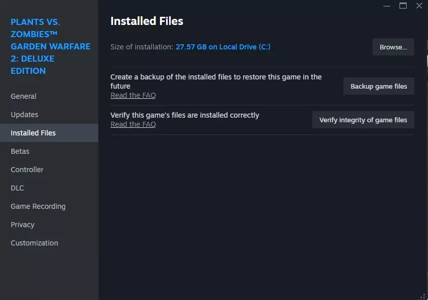 你应该会看到一个类似上图的错误提示。这是正常现象,完全无需担心。 现在你需要打开Steam,进入库页面。右键点击【植物大战僵尸:花园战争2】选项卡,然后选择属性。