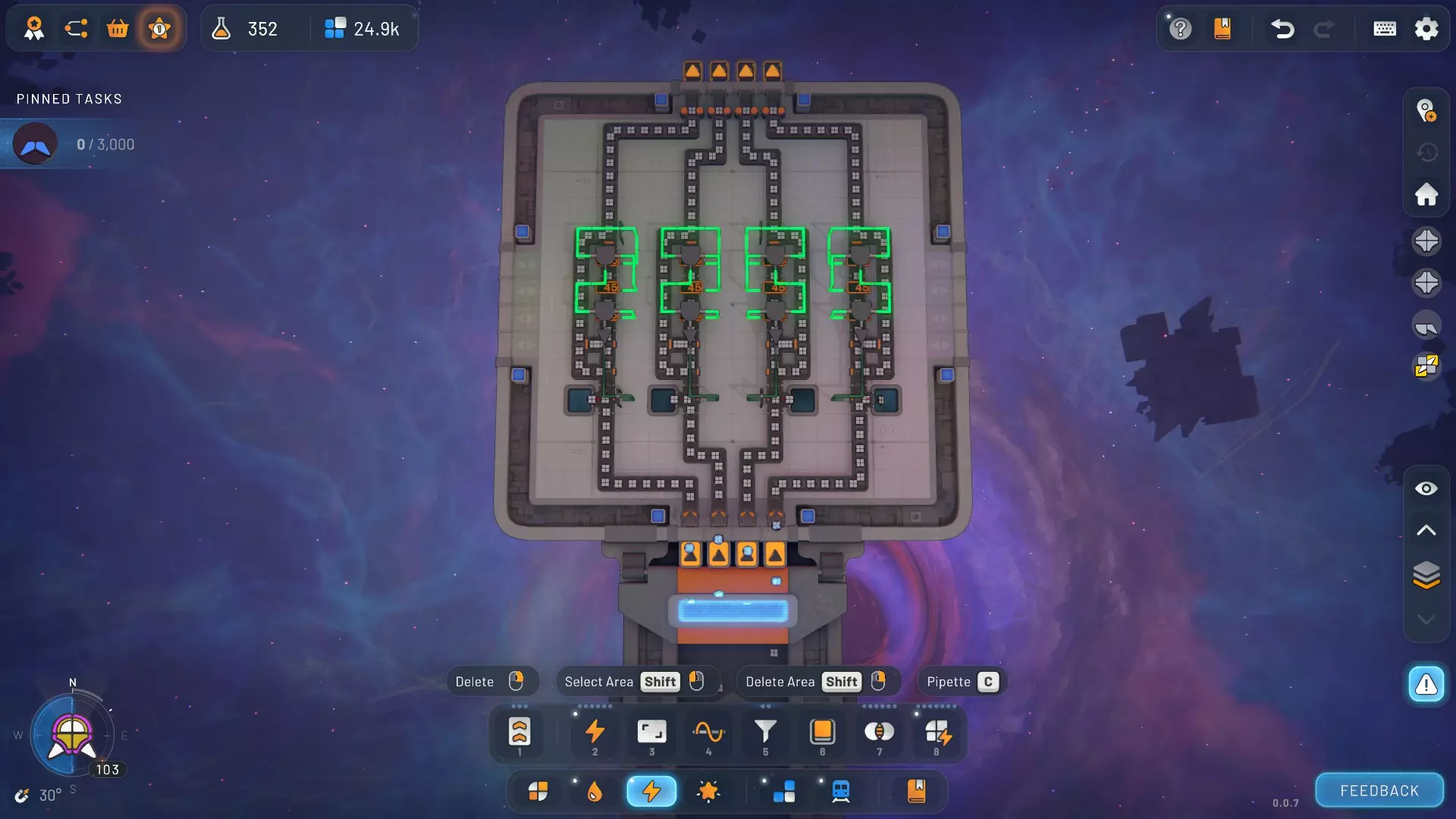 1x1方块蓝图 这是一个紧凑型1x1方块蓝图,第一层有4条输入传送带。