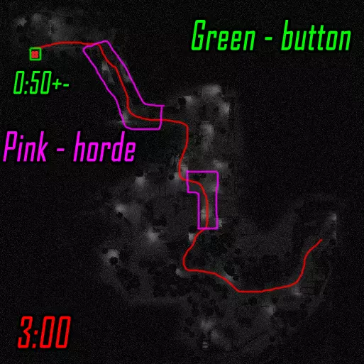 山猫在肾上腺素的作用下冲向按钮并返回(需要时)。猎人可以在第一个区域布置地雷,以便稍微清理山猫的返回路径。当山猫返回时,猎人按下按钮并清理终点。