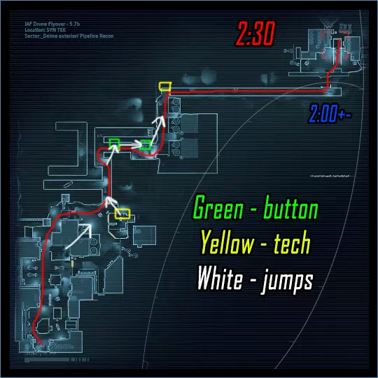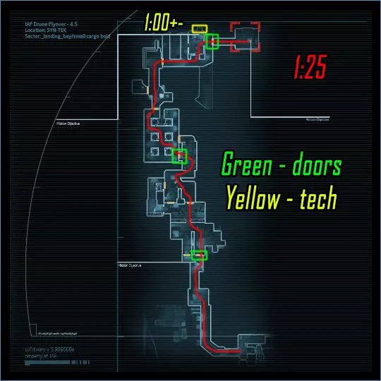 在第一个技术黑客行动前,技师穿上喷气靴,按照地图指示跳跃。在肾上腺素状态下先骇入桥梁,再骇入电脑。中士留在机库进行清理,直到任务完成(可以稍后放置地雷,希望能足够清理机库)。巴斯蒂尔负责清理通往终点的路径,维加斯跳到最末端并在肾上腺素状态下进行骇入。如果有多名玩家,可以按下ESC键中断,按下V键召唤载具,此时AI队友会自行赶来/传送(可能)!