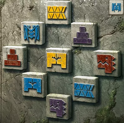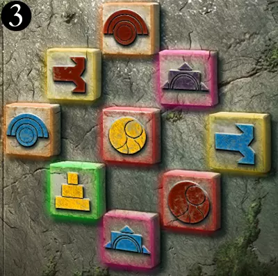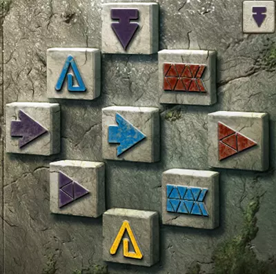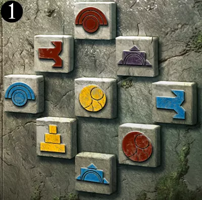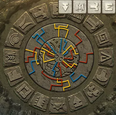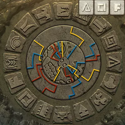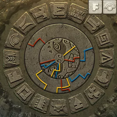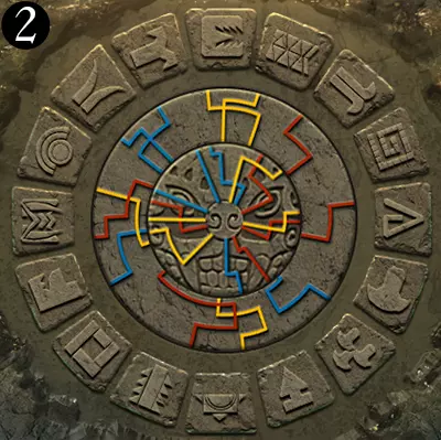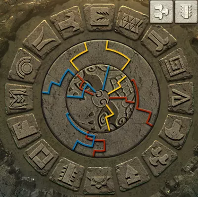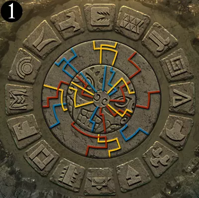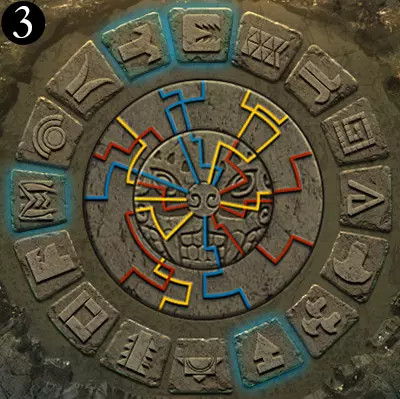当中环上单色线条与内盘上同色线条对齐时,中环即处于正确位置。此时,完整线条所连接到中心的符号组合即为答案。旧日支配者的准则