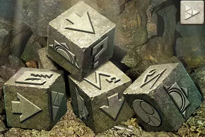 然后找到另一个立方体,其本应带有问号的面上的符号是可见的。旧神密码解决方案