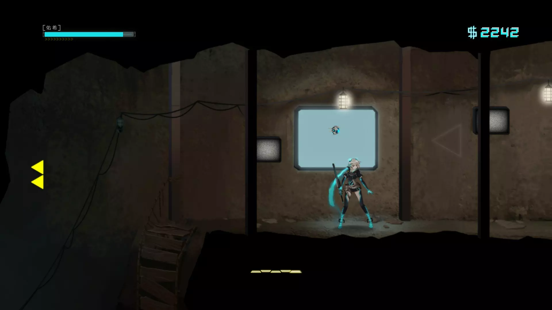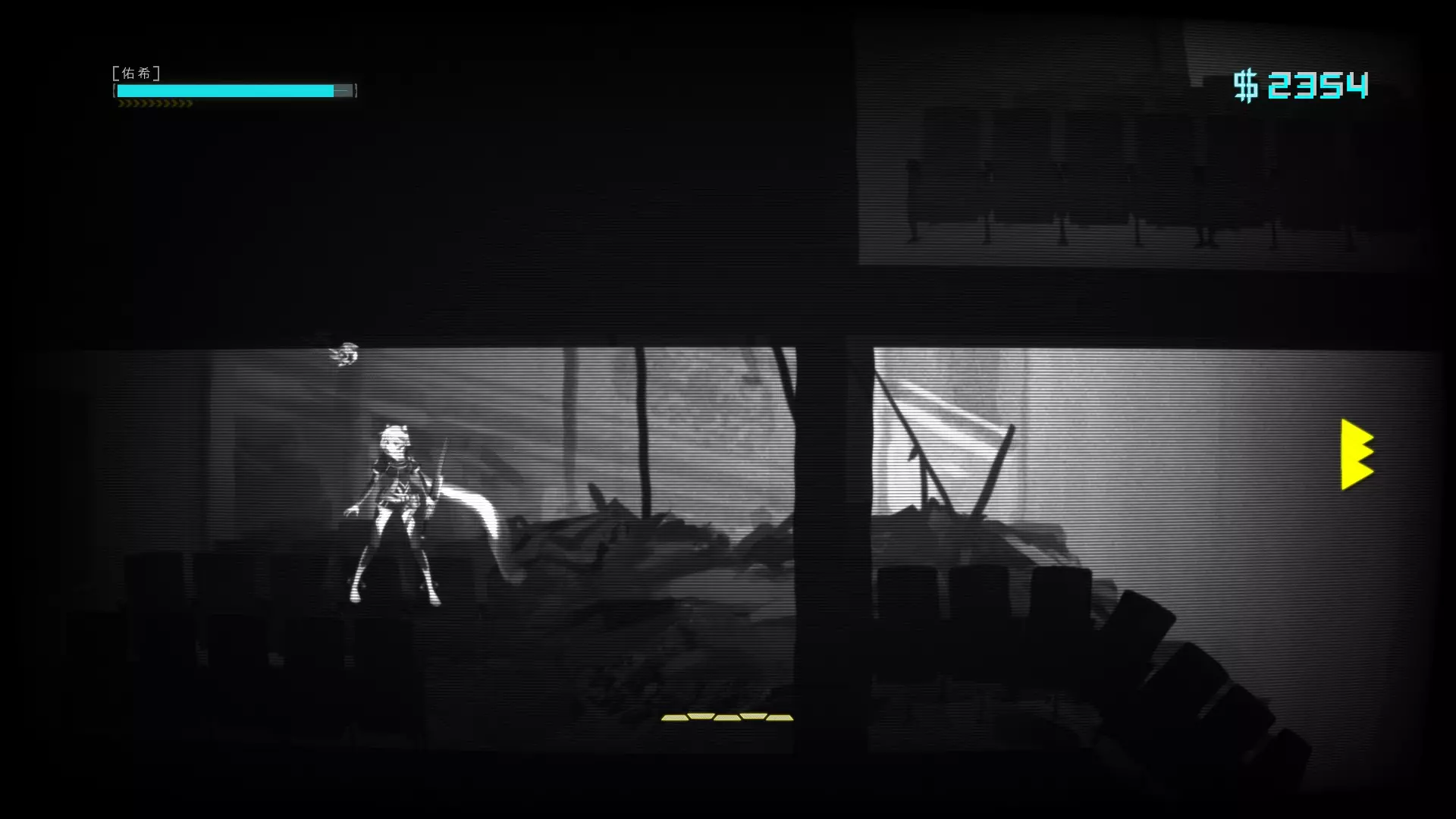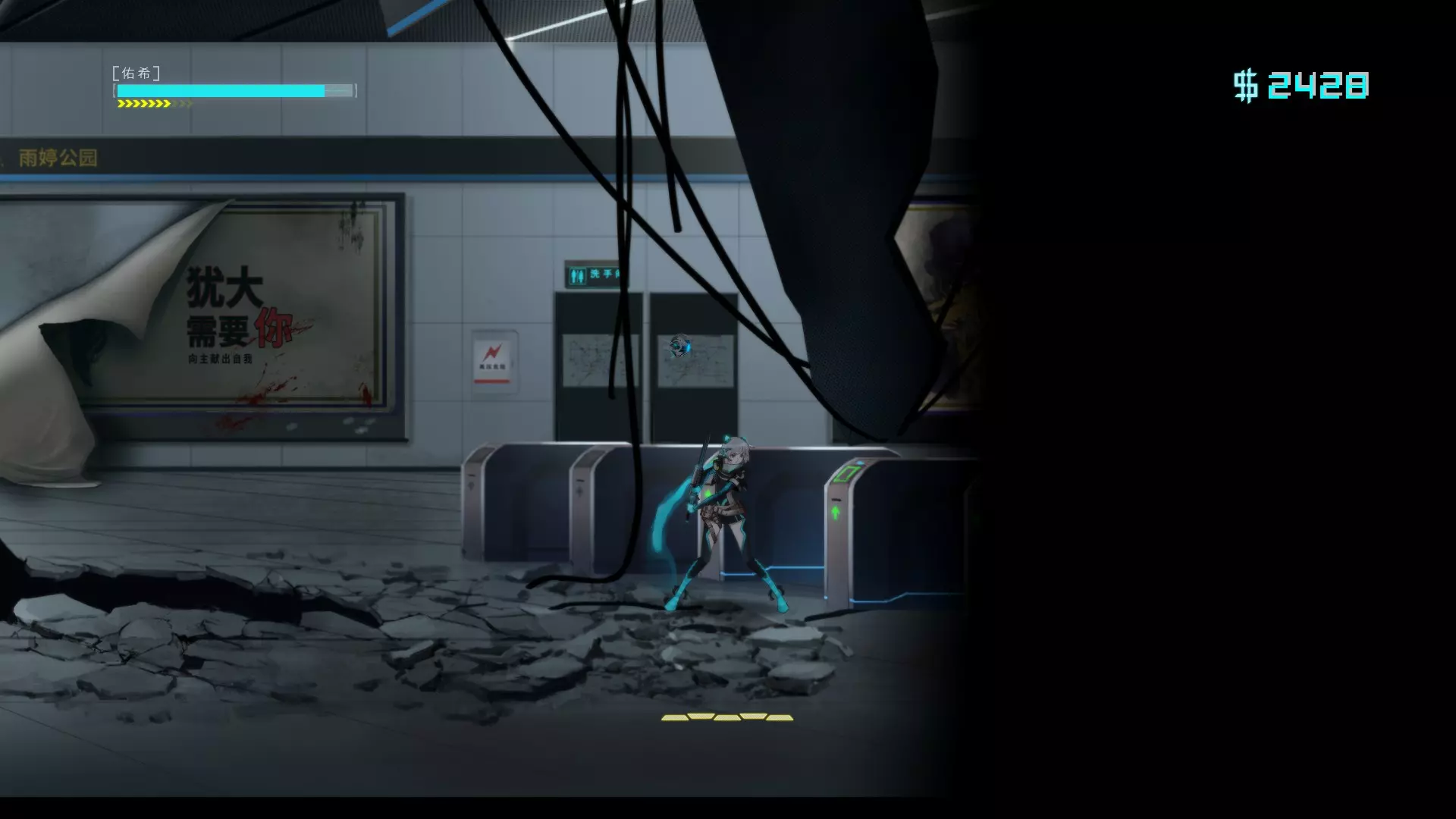 汐 进入【汐】关卡 第五章地铁传送口,依据旁白路径到下图位置,用冲刺往下三次后跳入绿水里可触发