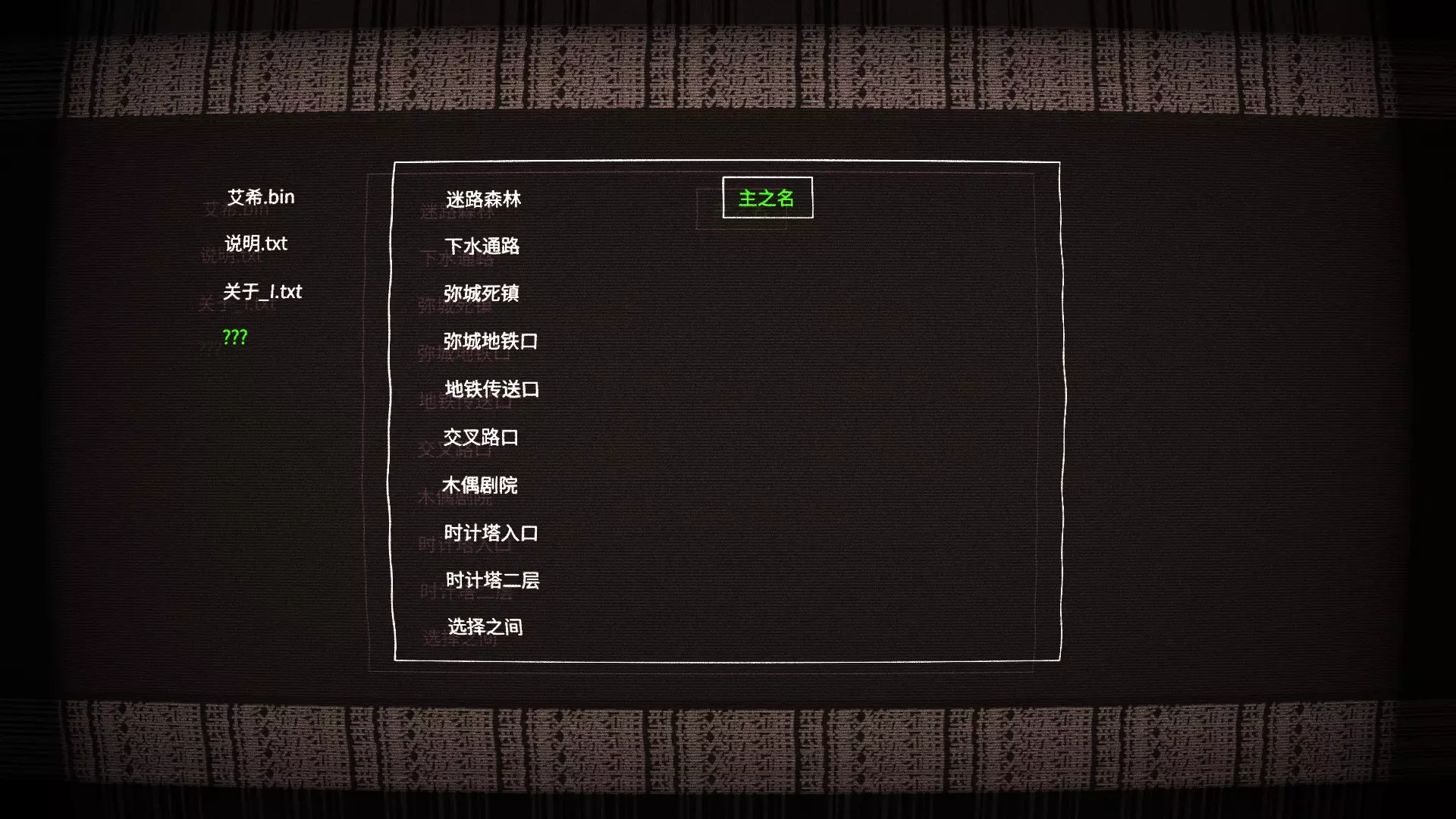 为了与你重逢,见证艾希自我的诞生,在选关画面选择主之名输入密码:HASTUR