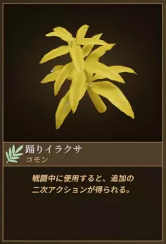 如果四次攻击还不够,可以使用【踊りイラクサ】来延长连击。 【踊りイラクサ】是一种使用后能使二次行动+3的药草。当二次行动剩余1时(上述步骤7.),使用【踊りイラクサ】就能让二次行动变为3,从而继续连击。 对于灾厄和首领这类难缠的敌人,延长连击很重要,但提升火力也同样关键。 面对强敌时,建议在回合开始时使用像【ファーラル的药水】这类能提升攻击力的物品。由于连击次数较多,所以连击和攻击提升物品的搭配效果相当好。当然会消耗一个二次行动,但用【踊りイラクサ】来弥补的话就没问题。 大致流程如下: 使用攻击上升道具→ 聚焦攻击→(重劳动)→使用【踊りイラクサ】→ 聚焦攻击→(重劳动)→使用草药→ 聚焦攻击→(重劳动)→使用草药→ 聚焦攻击→(重劳动)→使用【踊りイラクサ】→ 聚焦攻击→(重劳动)→使用草药→… 如果在连击前让其他同伴施加寒冷或防御降低效果,伤害应该会进一步提升。推荐装备 带有【寻找草药】的装备:寻找草药是回合结束时有可能找到草药的技能。在这套配装中,草药越多越有帮助,能拿到这个装备就算运气不错了。 带有【复习】的装备:复习是回合结束时有可能恢复1点专注值的技能。只要有1点专注值,就能进行专注攻击→重劳动→攻击的两次攻击。不用消耗草药就能打出连招,能大幅提升常规战斗的火力。复习的发动概率受智力影响,低智力的马丁虽然难以灵活运用,但并非完全不会发动,装备上也不会吃亏。部分装备带有【二次行动+】效果。无需依赖【回避舞步】也能增加连击数,建议记住这一点。 【弱体化后补充说明】:运气会影响第二次及之后【重劳动】的发动,因此运气已成为极其重要的属性。有许多装备可修正运气,其中首推能+20运气的饰品【黑猫】。该饰品常在夜市出售,有时也会作为任务报酬或在普通商店售卖。 此配装的缺点:【弱体化后补充说明】:第二次及之后的发动概率完全随机,毫无商量余地。嘛,太强了也是没办法的事呢。 一点是马丁自身的属性。 马丁最高的属性是敏捷78,其次是力量74,感知68。 可用的武器几乎都是力量型武器,武器的适配性差的话很难更新装备。虽然也有速度型匕首,但总感觉火力不足。 力量作为第二属性,技能成功率不太高也是个缺点。 连击时会使用专注,情况会好一些,但普通战斗中的火力还是不稳定。如果不用装备来提升的话,很多时候就连3次判定都很难出完美。另一个问题是消耗较大,难以轻松使用。 虽然通过草药医生、掉落物、商店等途径获取草药本身并不困难,但即便如此,也不能在每场战斗中都使用连招。需要仔细判断使用场景,将其作为对抗 bosses 或棘手敌人的王牌。 最后是治愈烟斗的获取。 没有它就无法开始,但获取过程不可避免地要靠运气。 城镇商店出售的烟斗有恢复、治愈、知识、敏捷四种类型,只要游玩一周左右,在某个城镇就能买到,所以烟斗本身的获取难度并不高。