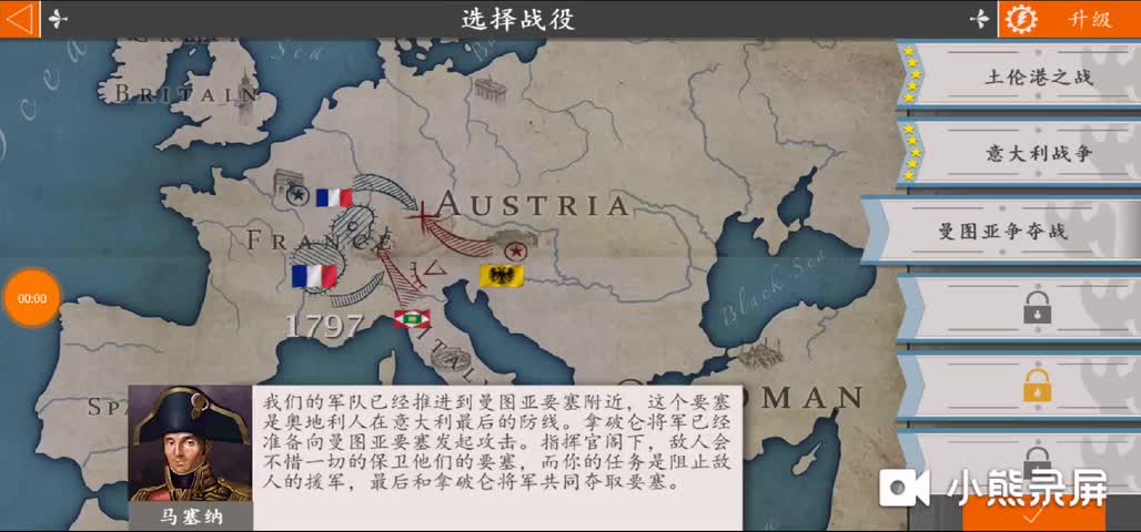 之后,是时候率领你的军队攻占剩余的奥地利城市并赢得这场战役了。 尾声 你消灭了奥地利人,完成了拿破仑战役,在世界状态中法国控制的领土达到100%。