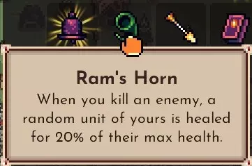 击杀敌人时,会随机为1名友方单位恢复其最大生命值的20%。 大概是亡灵单位拉姆(长有绿色角)的角。 作为友方单位的恢复手段,能够在进行攻击的同时实现恢复,因此非常强力。 实际上是传说级的。 如果在讨伐首领的途中没能捡到这个,在1000周以上的世界中就很难生存,所以会当作是途中练习而重新开始。 关于敌人波次的周期 大约在1220周时,敌人单位配置数量会重置,第一次重置在1650周左右。