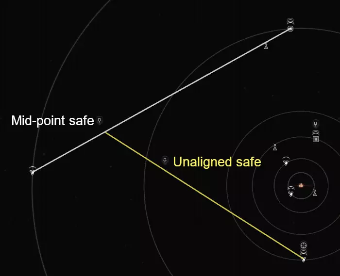 此外,建立自己能够藏身的安全点(Safe Spot),也是《星战前夜:晨曦》玩家在虫洞活动的基本功。所谓的安全点,就是一个远离任何可跃迁物件的地点,换言之,它是一个远离各种星体或建筑物、其他玩家无法在地图上简单地按“跃迁”就能飞过来的地点。玩家从A地跃迁往B地时,在跃迁中途新增地图书签(bookmark),就能创造一个简易的中途安全点(Mid-point Safe Spot)。建议玩家先飞到安全点,再开始慢慢扫描虫洞的信号点。除了虫洞,在低安全等级和零安全等级星系中安全点也十分有用。 跃迁技巧