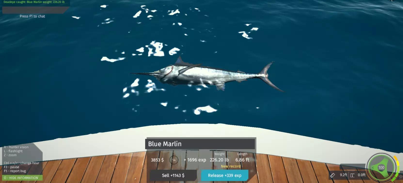 当你看到一些大圆点时,停下来并使用猎人视觉确认它们是否是马林鱼。