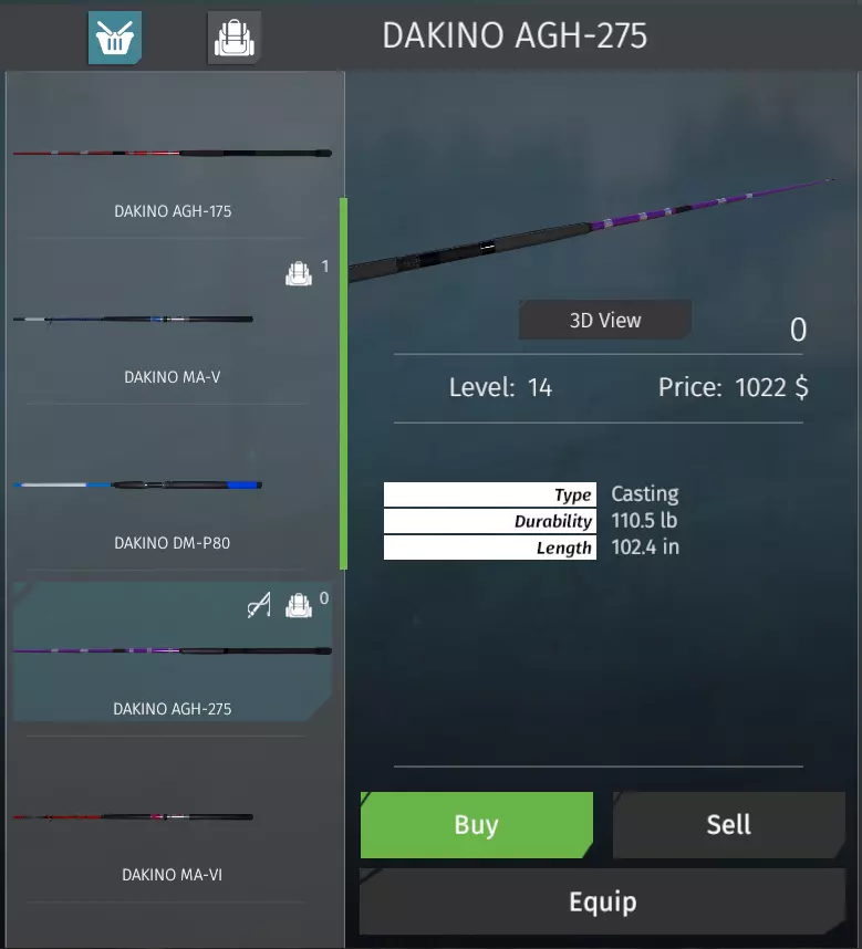 所需装备! 下竿 -> 抛竿 DAKINO AGH-275